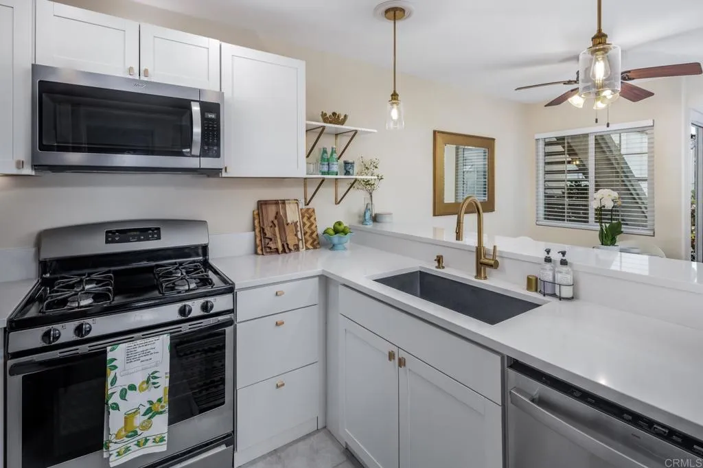 Welcome to this newly upgraded 2-bedroom, 2-bath single-story home in the La Costa Alta Carlsbad community. The home is a first floor end unit with only two shared walls. Conveniently located near Carlsbads beautiful beaches, hiking, shopping, dining, and world renowned golf, this is a well-maintained, move-in ready home with a thoughtful layout and quality updates throughout. It features a well-designed floor plan with a spacious living room centered around a fireplace and brand new sliding doors that open to a private patio. The new kitchen with new cabinets and quartz countertops offers gas cooking, breakfast bar seating, and a dedicated dining nook, creating a practical layout for both everyday living and entertaining. The interior has been thoughtfully improved with meaningful upgrades, including a remodeled kitchen, bathrooms, brand new energy efficient dual-pane windows and a newer HVAC system, providing both comfort and long-term value. One bedroom includes direct access to the patio, enhancing the indoor-outdoor flow. Additional features include stackable in-unit laundry, two assigned parking spaces, and a large separate private storage unit. The community offers a pool, hot tub, fitness center, clubhouse, and well-maintained grounds. HOA covers water, trash, landscaping, exterior insurance, exterior maintenance, and access to all amenities. Whether you are a first time home buyer, an investor or looking for a second home- this beautifully upgraded unit offers an amazing opportunity for you to live, in La Costa! Welcome home!