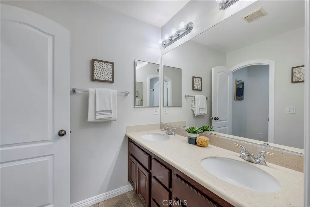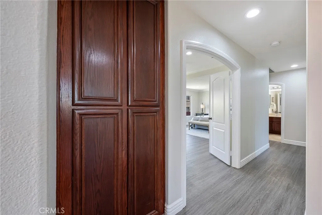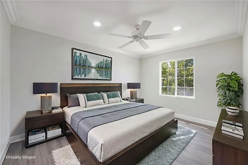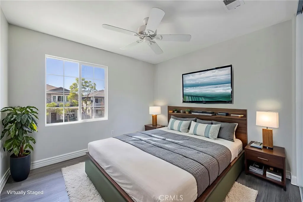 Discover exceptional living in the resort-style, guard-gated community of Dominguez Hills Village, where residents enjoy beautifully maintained grounds, a clubhouse, gym, swimming pool, tennis and basketball courts, parks, and scenic walking paths. This highly sought-after neighborhood offers comfort, security, and convenience, located near Dignity Health Sports Park, CSU Dominguez Hills, shopping, and major freeways. Inside, this home features 3 bedrooms plus a versatile loft that can easily serve as a 4th bedroom, complete with a wardrobe and sliding partition wall for added privacy. Thoughtful upgrades throughout enhance both comfort and efficiency. Plantation shutters and recessed LED lighting create a bright, energy-smart environment, while the owned and FULLY PAID OFF SOLAR SYSTEM and brand-new water heater help keep monthly utility costs low. Durable luxury vinyl plank and tile flooring flow through the living spaces, and ceiling fans in every bedroom ensure year-round comfort. The updated kitchen features a spacious island, walk-in pantry, and stainless steel appliances. It opens seamlessly to the family room, where a cozy fireplace and custom built-ins make for the perfect gathering spot. French doors lead to a private backyard with low-maintenance artificial turf, ideal for relaxing, entertaining, or unwinding after a long day. Upstairs, the primary suite offers a tranquil retreat with crown molding, inset ceiling, ceiling fan, LED recessed lighting, and an ensuite bathroom featuring dual vanities, a soaking tub, and a separate walk-in shower. Down the hall are tw