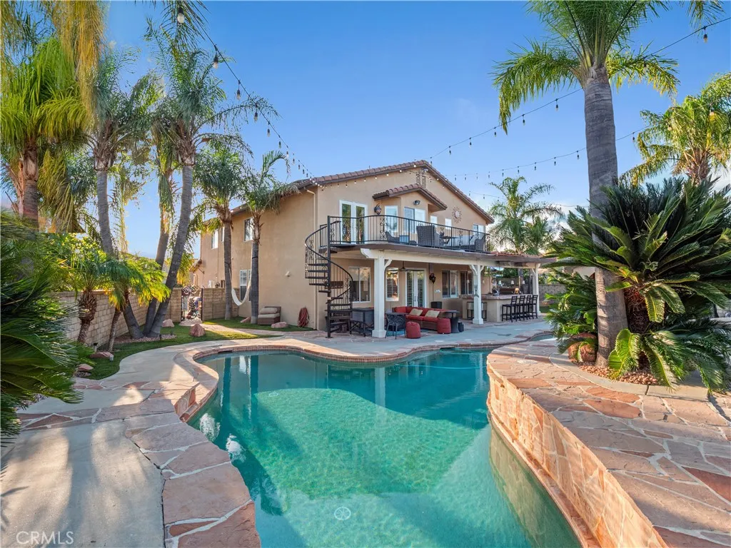 Come see this incredibly upgraded home with 4 Bedrooms + Den/Sitting Room and 4.5 Baths. This home's backyard is an absolute dream with a large pool, lazy river, Therapeutic SPA (6 feet deep), Fire wall, pool house with shower, gazebo w/fireplace, A built in BAR with BBQ and Ice Maker! This is an entertainer's dream home! Custom Travertine tile floors, Built-Ins in the Family Room, Dining Room, and Sitting Room. The fantastic Primary suite with a spa like tub and amazing shower with multiple shower heads! Walk-In-Closet with custom organizers and an Island with drawers. Down the hall a junior suite with a private bath and two more bedrooms with a Jack-and-Jill bath. The home also offers surround sound system, formal living room with cathedral ceilings, formal dining room, family room, open and bright kitchen with center island and more fantastic upgrades. This is a MUST SEE!