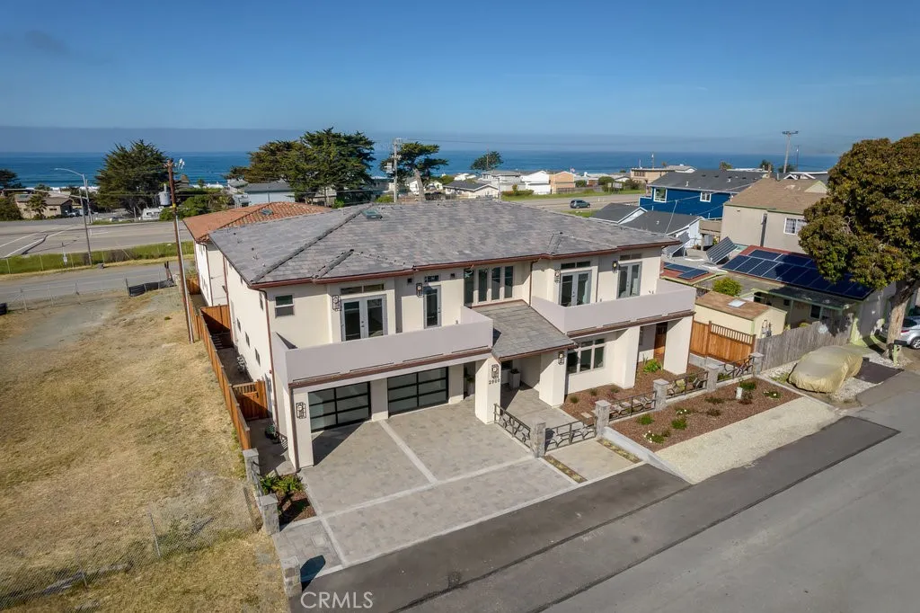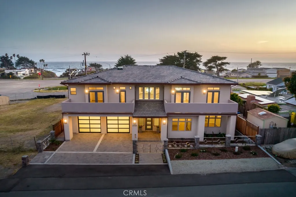 Contemporary coastal living, redefined. Welcome to your Cayucos dream homewhere sleek design meets laid-back beach vibes in the best way possible. With 4 bedrooms, 3.5 bathrooms, and ocean views that never get old, this custom-built stunner isnt just a place to liveits a place to thrive. From the moment you arrive, the curb appeal is undeniable. Recessed outdoor lighting and modern sconces set the scene, while eco-friendly landscaping and a paver walkway guide you to the stylish Therma Tru front door. Step inside, and youre instantly wrapped in natural light, fresh sea breezes, and a floor plan that flows effortlessly from one inviting space to the next. Upstairs, the open-concept living area is a showstopper. A gas fireplace with a sleek marble surround takes center stage, while designer touches elevate the space at every turn. And the kitchen? Pure perfection. Think quartz countertops, shaker-style cabinetry, top-tier stainless steel appliances, a wine fridge, and a central island with a built-in range and modern hoodbecause every great gathering starts in the kitchen. The primary suite is all about luxury, with a spa-like ensuite, a spacious walk-in closet, and a soaking tub that practically begs you to unwind. This level also includes an indoor laundry room, an additional bedroom, and a beautifully designed guest bathroom. Head downstairs, and youll find two more bedrooms, including one with its own ensuite, plus a half bath, a covered patio with a wet bar, and access to an oversized four-car garage (because you can never have too much storage). And the backyard? Low-ma