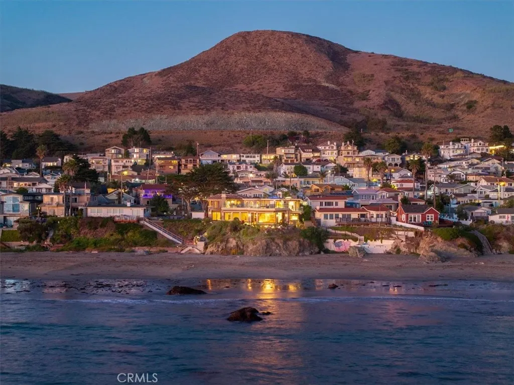 Introducing 502 Pacific Avenue, a luxurious oceanfront villa set above the shores of Cayucos on California's Central Coast. This 6,000+ sq ft residence is designed for the most discerning buyers, showcasing exceptional craftsmanship, technology, and comfort. The property sits on a 10,000+ sq ft oceanfront lot and welcomes you through a self-opening wrought iron gate into a travertine courtyard, surrounded by lush landscaping, roses, and water features. Inside, the foyer's 18-foot ceilings, mahogany corbels, and stained-glass skylight set an impressive tone. Marble floors, radiant heating, and Swarovski crystal chandeliers enhance the sophistication. The great room offers Pacific Ocean views through floor-to-ceiling windows, complemented by Venetian plaster walls and smart home features, including Roman shades and a whole-home sound system. The chef's kitchen is equipped with a 60" Wolf range, Sub-Zero refrigerators, Bosch and Fisher Paykel dishwashers, and a backlit onyx island. A pass-through window connects the kitchen to a dining area, which opens to outdoor seating with a fire pit and a private stairway to the beach. Two primary suites on separate levels with ocean views and private patios offer unmatched luxury. The main level suite features a spa-like bathroom with heated surfaces, a walk-in shower, and crystal-accented vanities. The upper suite boasts floor-to-ceiling sliders that slide into the wall to take in the ocean air, an expansive terrace with outdoor TV & fire pit, and is perfect for viewing sunsets over Morro Rock. For entertainment, the lower level offers