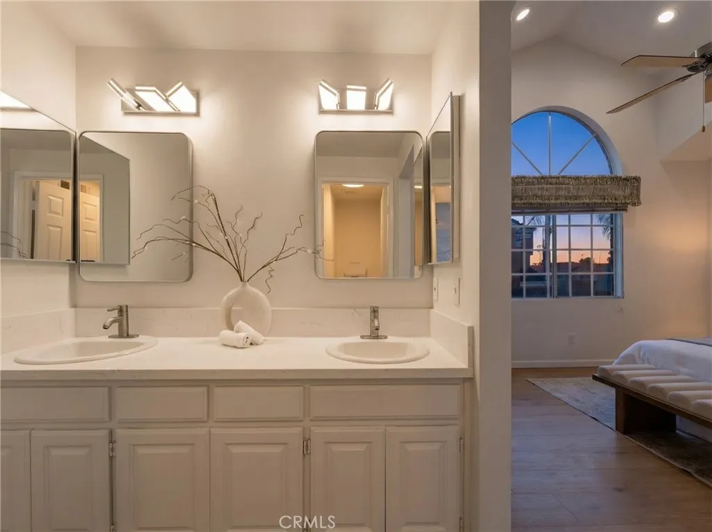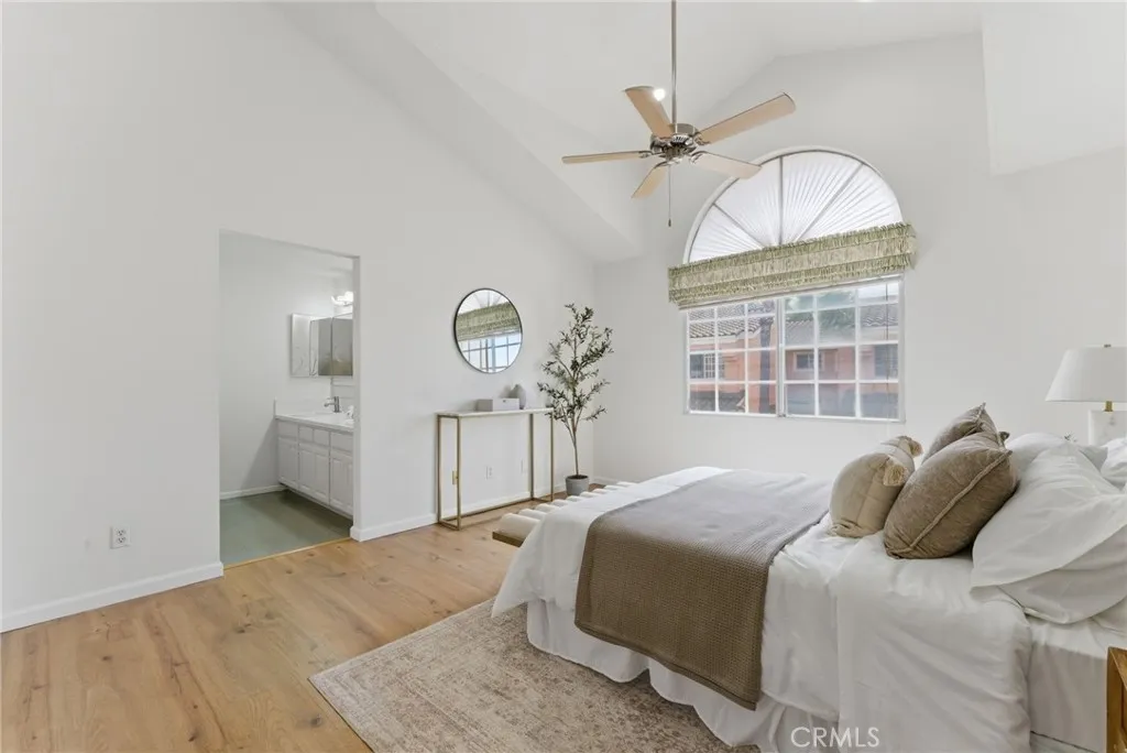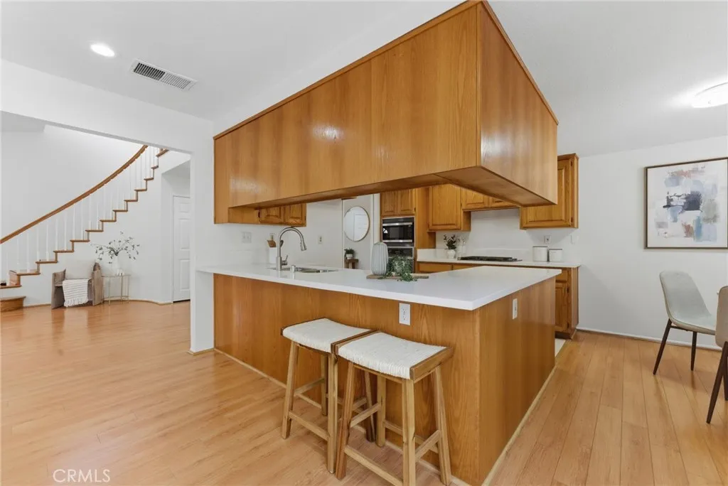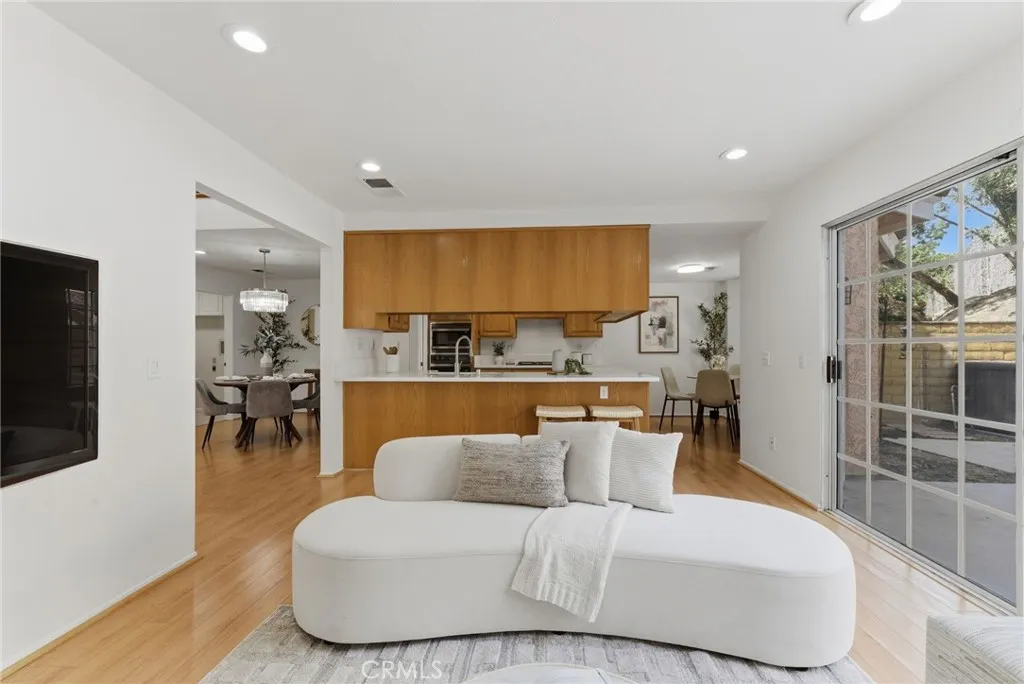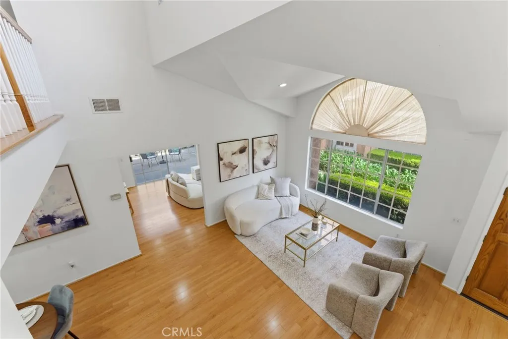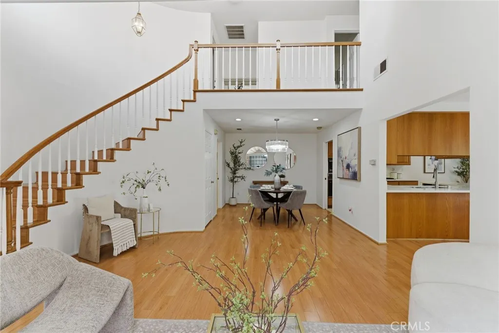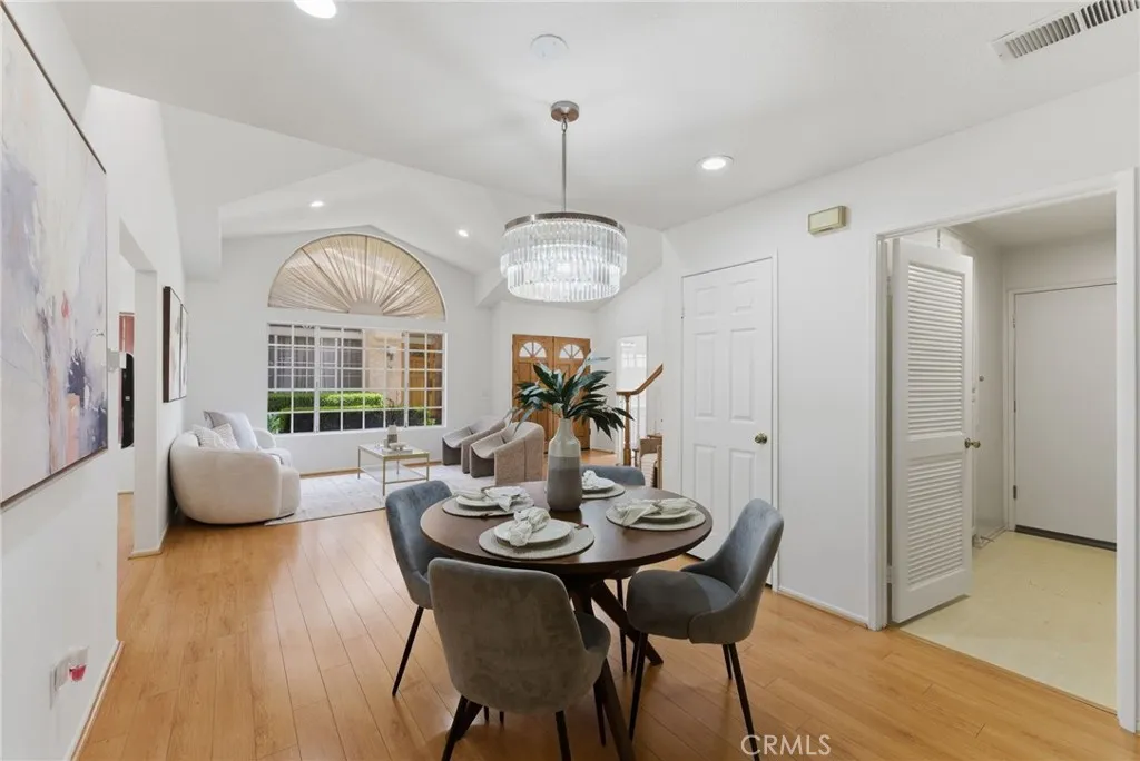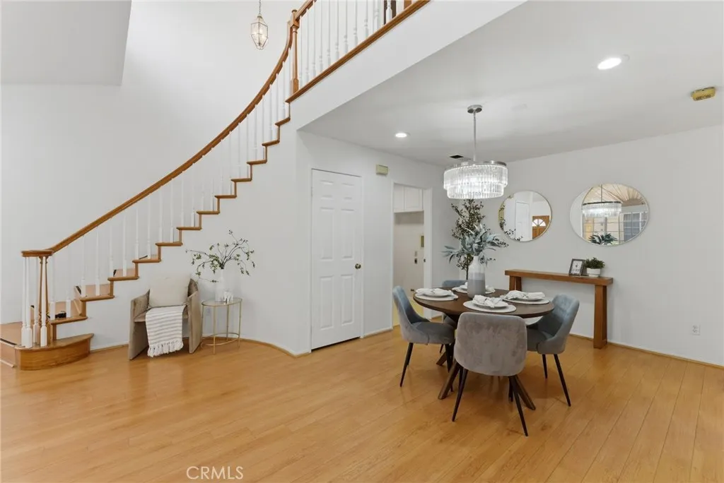 ABC School District + Cerritos + Gated Community = Opportunity. This freshly painted townhome offers a bright, open floor plan with soaring ceilings and abundant natural light throughout. The formal living and dining areas create a spacious setting for both everyday living and entertaining. The kitchen features quartz countertops, a new beverage fridge, ample cabinetry, breakfast nook, and a seating bar, opening seamlessly to the family room with fireplace and direct access to the private patioideal for indoor-outdoor living. Upstairs, the primary suite features high ceilings, generous space, and an en-suite bathroom. Bathrooms throughout the home have been recently upgraded, adding a fresh and modern touch. Two additional bedrooms offer flexibility for guests, home office, or gym. Interior features include laminate wood flooring, recessed lighting, and large windows throughout. Additional highlights include a 2-car attached garage with direct access, laundry hook-ups with additional storage, and access to community amenities including pool and spa. Conveniently located near the Cerritos Library, Cerritos Mall, variety of dining options, and close to the 605 and 91 FWY. This home presents a rare opportunity to own in a gated Cerritos community within the highly sought-after ABC Unified School District.