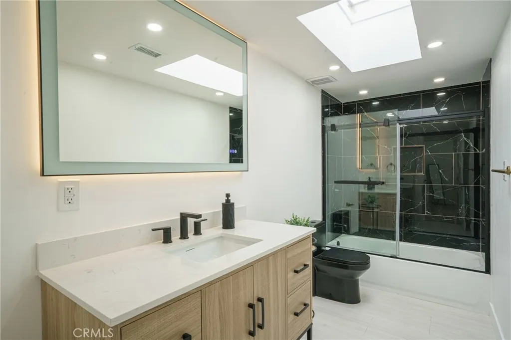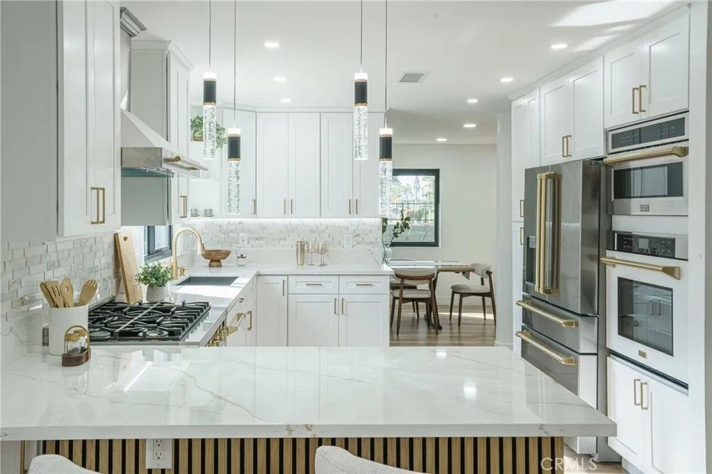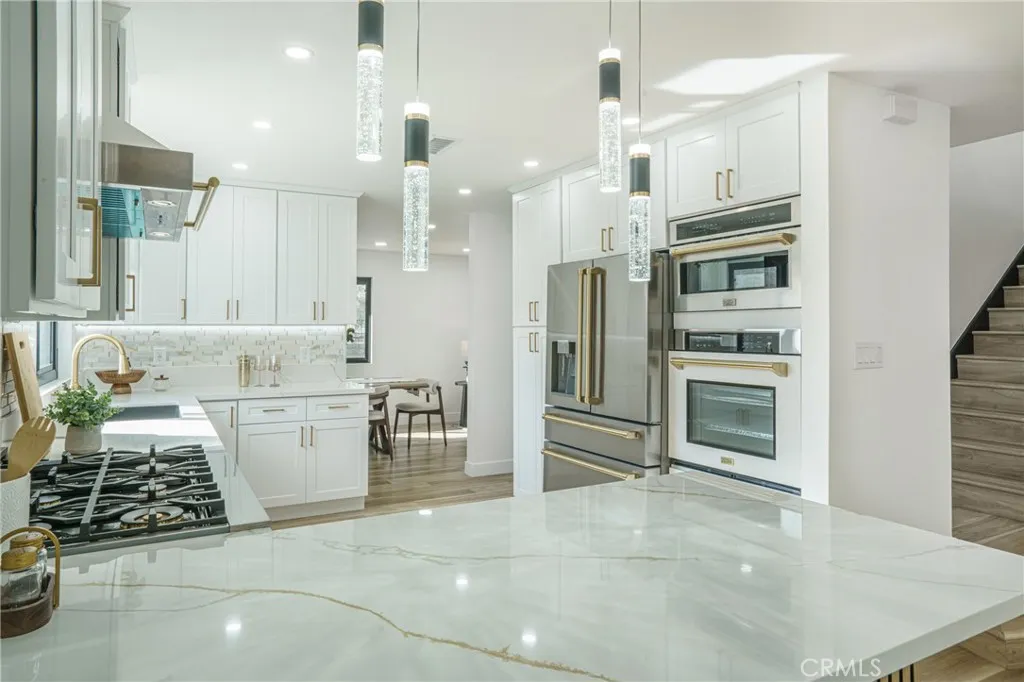Welcome to this stunning 2-story masterpiece in the prestigious City of Cerritos. Fully renovated in 2025, this 4-bedroom, 2.5-bath + bonus room home blends modern elegance with everyday comfort. The heart of the home is a designer kitchen featuring top-of-the-line Z-Line stainless steel appliances, granite countertops, custom cabinetry, a walk-in pantry, and a stylish island perfect for gatherings. The open floor plan flows seamlessly into the spacious family room with fireplace, formal dining room, and living room all enhanced with recessed lighting, new flooring throughout, and Bluetooth surround sound on the main level. Upstairs, the luxurious primary suite awaits, complete with two oversized closets and a spa-inspired bathroom offering dual sinks, a soaking tub, and an expansive tiled shower. Each secondary bedroom is generously sized, with elegant bathrooms illuminated by skylights for natural light. Step through double doors into your private backyard oasis an updated covered patio with ceiling fan and string lighting, perfect for morning coffee or evening entertaining, overlooking lush landscaping. Additional highlights include: GA -Timberline shingle roof -Custom finishes throughout -Corner lot privacy -No HOA fees -Community tennis court & playground just steps away. This rare Cerritos gem offers the perfect blend of location, upgrades, and lifestyle. With so many custom touches, it truly must be seen to be appreciated. Dont wait this dream home wont last long!