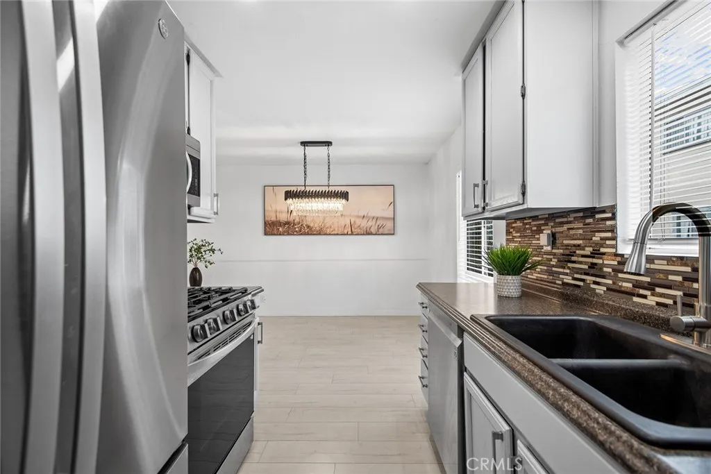 Welcome to this great Chatsworth townhouse offering an open living spaces and a great location close to parks, shopping, and major freeways. The main level features a living room with a cozy fireplace and sliding doors that open to a large patio - ideal for dining, entertaining, barbecuing, or relaxing outdoors. The kitchen includes ample storage, stainless steel appliances, and a spacious dining area with room for an eight-person table. A powder room is also located on this level. Upstairs, youll find two oversized bedrooms, both with high ceilings and large closets, along with two full bathroomsone en-suite in the primary bedroom. The lower-level bonus room provides great flexibility. Use it as a home office, gym, creative space, storage area, or a TV/video game/movie room. Side-by-side laundry is also located on this level, along with direct access to the attached two-car finished garage. Recent improvements include new flooring throughout, LED recessed lighting, new kitchen appliances, and a new HVAC system. This small, well-run HOA community offers a sparkling pool, plenty of guest parking, and low HOA dues.