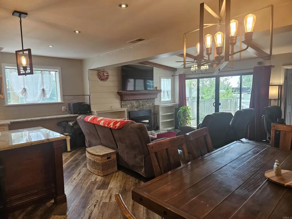 Stunning RARE Gem. Upgraded 3BR/2BA home with a detached garage on a spacious 25,700 sqft corner lot (two parcels) offering privacy, versatility, and a desirable rural lifestyle. Positioned at the rear with dual driveway access, ideal for RV parking, horse property, and recreational storage. Features a modern open floor plan with a gourmet kitchen, large island, farmhouse sink, granite counters, stainless steel appliances, wine fridge, and ample seating. Inviting living room with wood-burning stove and custom mantel. Split-bedroom layout provides privacy; the primary suite and front bedroom offer direct outdoor access. Enjoy mature trees, usable land, and equestrian amenities, including a 3-stall barn, tack/storage area, concrete breezeway, and trailer pad. Close to riding trails and outdoor recreation.