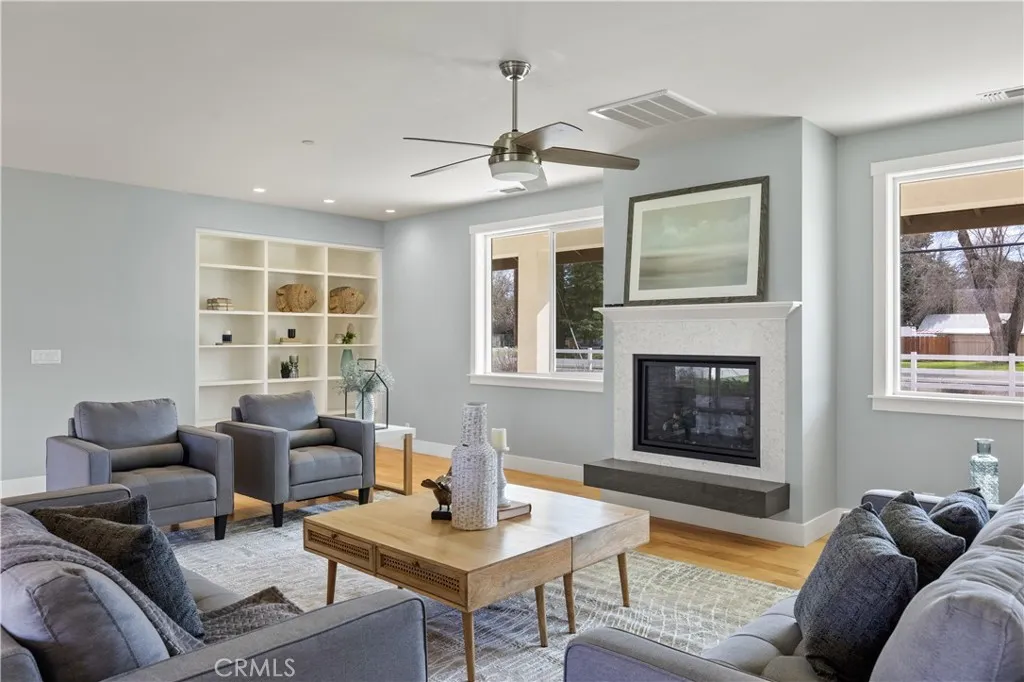 Are you kidding me? $240 per square for a high end home on an acre! Who ever has the savvy to buy this home is likely to be arrested for theft. This beautiful executive home features high quality finishings and high-end appliances on 1+ acre corner lot. The expansive floor plan offers 3 bedrooms plus an office, a large kitchen with central island, living room with fireplace, and a primary suite that is handicap accessible with roll-in shower and under-sink openings. The entire house was designed for easy accessibility and has no steps or elevation changes from the driveway and garage into and throughout the house. The kitchen features Silestone counters, GE Monogram appliances, Fisher Paykel dishwasher, a main fridge and a separate beverage fridge. The home features Asian Maple wood flooring throughout, as well as copious amounts of custom built-in shelves perfect for your books, photo's, art glass and other treasures. At the front and rear of the home you will find large covered concrete patios providing excellent outdoor living space. The back yard is fenced and features raised garden beds plus a dozen fruit trees including peach, plum, apricot and more. The driveway is poured concrete providing smooth access to a huge garage that is 50+/- feet deep. On the west side of the property is a masonry sound wall.