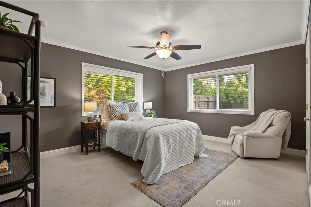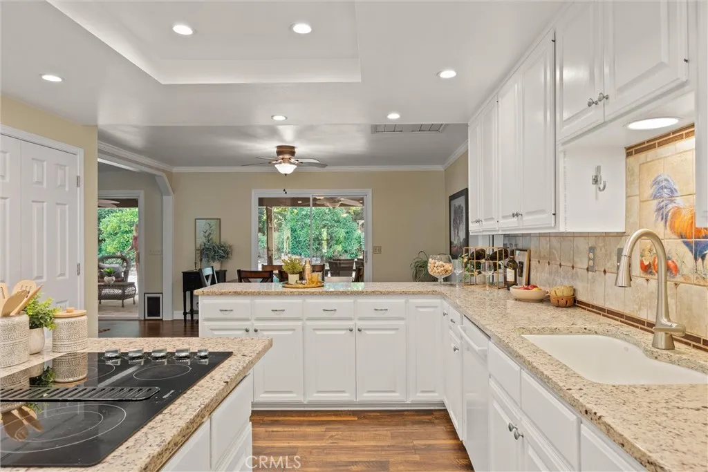 Tucked at the end of a quiet cul-de-sac, this beautifully maintained 3-bedroom, 2.5-bath home (plus office/flex room) offers incredible privacy on a spacious .49-acre lot surrounded by mature shade trees and beautiful landscaping. Inside, the bright and spacious living room features tray ceilings, a beautifully tiled fireplace ready for a wood stove, and large sliding glass doors that overlook the incredible backyard. The large dining area flows right into the kitchen, which offers all the space youve been hoping forgranite countertops, an island, lots of counter space with a generous peninsula countertop, white oak cabinets, recessed lighting, sky tubes, a wall oven, Jenn-Air cooktop, Bosch quiet dishwasher, and a charming breakfast nook with a window seat perfect for morning coffee. It has it all! All the bedrooms have brand-new carpet, and both full bathrooms are beautifully updated with double vanities, tiled finishes, and great storage. The primary suite is extra spacious, featuring two closets (including a walk-in), a gorgeous updated en-suite bathroom, and private slider access to the backyard. On the opposite side of the home, the bonus room is a fantastic flex spaceideal as a home office, hobby room, or even a potential 4th bedroomand includes its own half bath plus exterior access. The backyard is truly a highlight. The 80' x 12' covered porch with stamped concrete, skylights, and outdoor ceiling fans creates the perfect year-round outdoor living space. The expansive yard offers mature oak and redwood trees, a swing set, fire pit, fruit trees (lemon, orange, apric