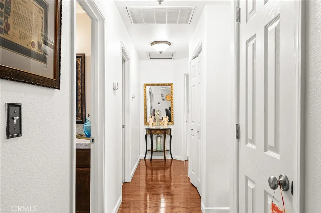 PRICE DROP!! 3 Bedrooms PLUS LARGE BONUS ROOM! This is the first time on the market for this beautiful home in the heart of Amber Grove. The original owners have meticulously maintained and upgraded this home over the years. Pride of ownership is evident throughout this cherished home. With sparkling upgraded wood floors in the main living area and natural light coming in through the skylight, you can experience the perfect blend of indoor and outdoor living, with sliding glass doors opening the living room up to the back patio! With an open floor plan, you will quickly see that the kitchen boasts updated appliances. The breakfast bar and separate dining area offer many seating options! Off the living room through French doors is also a large BONUS room! Remote control blinds have been installed for the extended windows, offering an extra touch of sophistication to this potential office space. OR, How about a Library/Book nook? Craft room? Game room? The possibilities to make it your own are endless! The guest bath features a tub/shower combo as well as an extended large linen closet. Another extended large closet for more storage is in the main hall! Each bedroom offers the comfort of plush updated carpets. The primary suite includes a walk in closet, the primary bathroom features an accessible step-in shower along with dual sink vanities. You have your own private oasis with another sliding glass door from the primary suite connecting you to the serenity of the back patio. A sizable indoor laundry room is off of the kitchen. The laundry room features a utility sink, and e