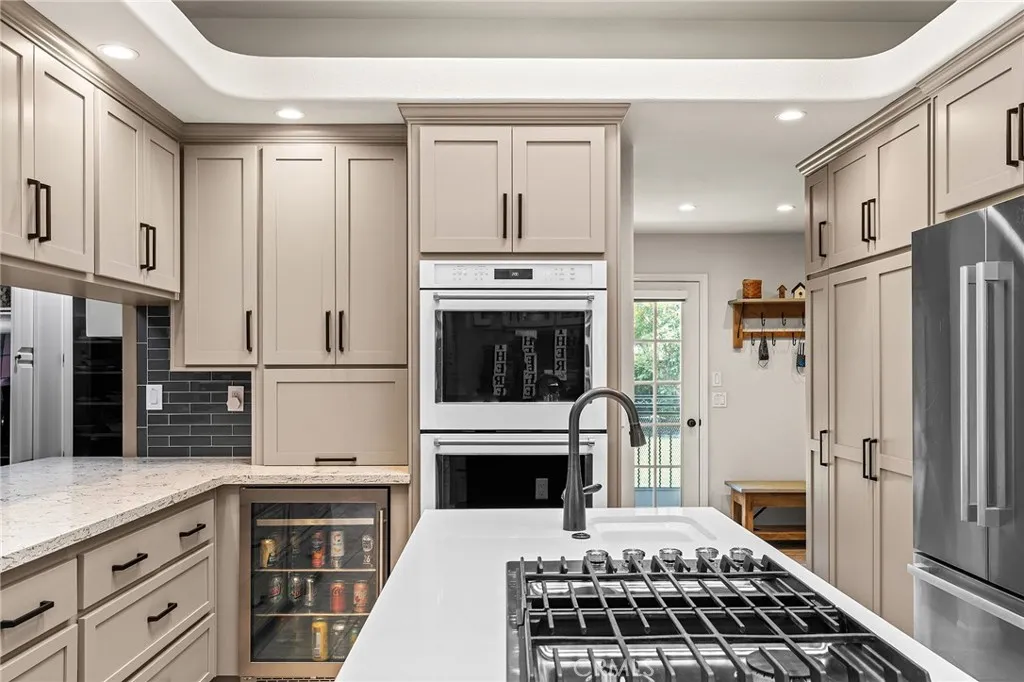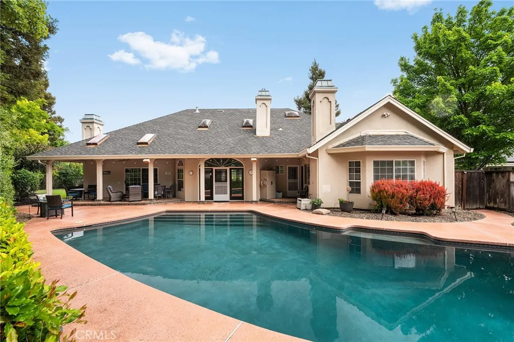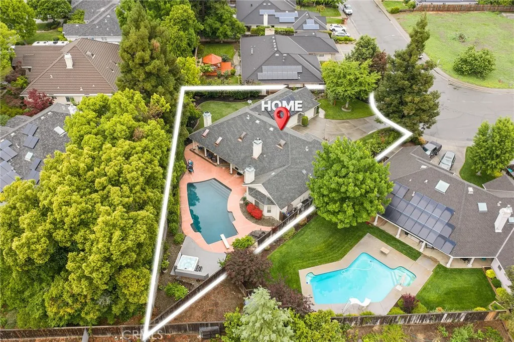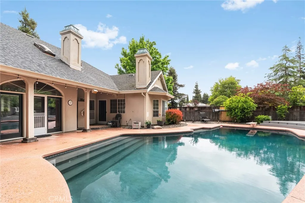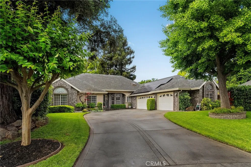 Welcome to 819 Westgate Court, a home where architecture, light, and livability come together in a way that feels both elevated and inviting. Tucked within a quiet cul-de-sac in an established Chico neighborhood, this is a property that quietly stands apart. From the moment you step inside, the design makes an impression. Soaring ceilings and an abundance of skylights fill the home with natural light from above, creating a bright, open atmosphere that feels completely different from the ordinary. The layout offers two distinct living spaces, allowing for both formal gatherings and relaxed everyday living, all thoughtfully connected to maintain a sense of flow and cohesion. Owned solar adds an added layer of efficiency, enhancing the ease of living in a home designed to be enjoyed. At the heart of the home, the kitchen and main living area create a space designed for connection. Anchored by a striking fireplace and enhanced by built-in audio, this is where everything happens, from quiet evenings to full-scale entertaining. The kitchen is a standout, featuring expansive stone countertops, a central island with a built-in KitchenAid range and prep sink, and a separate peninsula with bar-top seating. Soft-close cabinetry and drawers, KitchenAid appliances throughout, and a dedicated butlers pantry/prep area add both function and thoughtful design. The primary suite offers a true sense of retreat, with vaulted ceilings, a dedicated seating area, and a seamless connection to the backyard. The en-suite bath feels elevated and serene, designed to provide a spa-like experience with