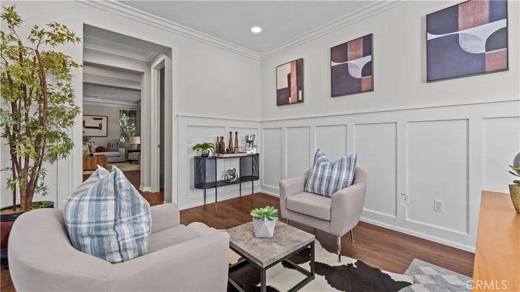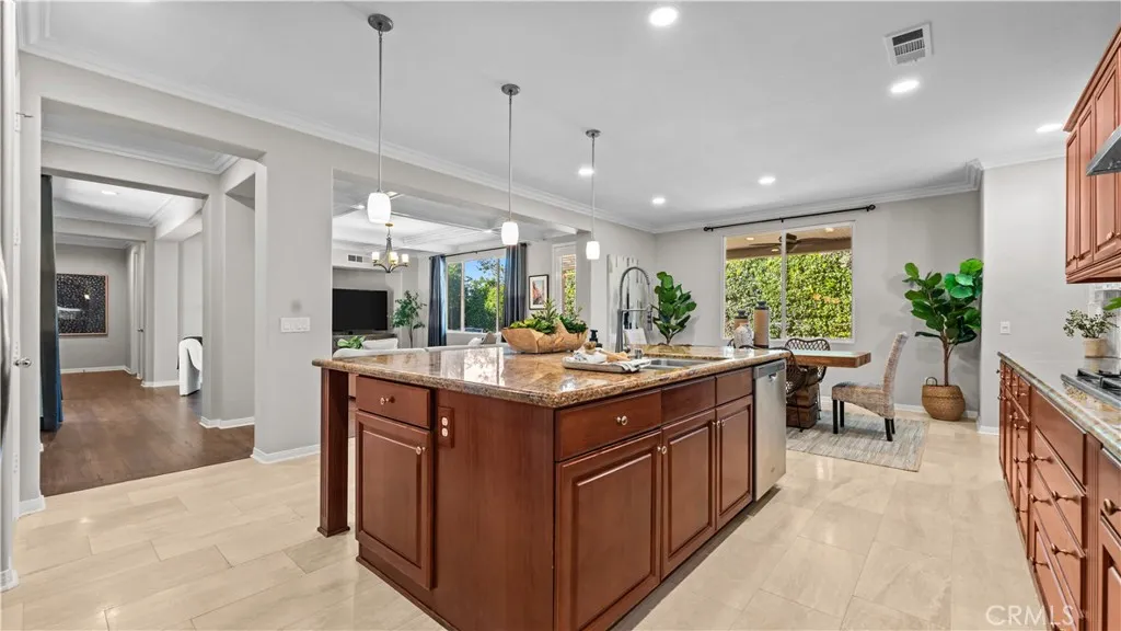 Welcome to this exquisite Craftsman style estate in the well desired College park Community of Chino. Boasting over 4200 square feet of living space. This 5 bedroom, 3 full bath and 1 1/2 bath residence is a harmonious blend of classic charm and modern luxury. The living area downstairs features gorgeous coffered ceilings for an elegant finish. There is a library area downstairs making it perfect to conduct business as a home office. The large and open chefs kitchen area is another inviting feature for those who want to entertain with an oversized island and a breakfast bar that can be fit for large gatherings. The butlers pantry is a wonderful addition! Discover timeless elegance in every detail, from the handcrafted woodwork to the gourmet kitchen. There is one bedroom downstairs with a full bathroom suite, and three upstairs with one primary bedroom suite. The primary bedroom suite has a sizable walk-in closet with a full size bath tub and shower area along with double sink counters. The loft area upstairs can be used for a home theater or a multipurpose area. Nestled on a sprawling lot exceeding 10,000 sq ft, the home features meticulous craftsmanship, spacious interiors, and a seamless fusion of indoor and outdoor living. Backyard, which is ideal for fruit trees and various plants, should you desire, is accessible with a patio door from the living room. The patio area makes it perfect as a serving point to host gatherings for family and friends with its mature trees offering privacy. Beyond its elegant confines, residents enjoy access to several community amenities tha