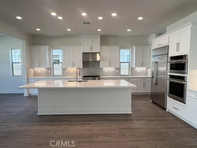 Beautiful Hacienda style home located in the desirable gated community of Yorba Estates. This single-story residence features 3 bedrooms plus a spacious bonus room and sits on a generous lot that's perfect for outdoor entertaining. Inside, the kitchen stands out with a gorgeous custom backsplash, crisp white cabinetry, quartz countertops, and Monogram Collection appliances including a 42 built-in refrigerator, 36 range top, and professional hood. The home features laminate wood flooring, recessed lighting, ceiling fans, and beautifully tiled bathroom surrounds. A 3-car tandem garage with an EV charger completes this thoughtfully designed home.