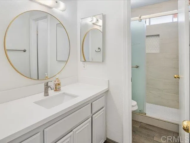 Beautifully renovated home in gated community. Open floor plan with 4 BR 2.5 BA, vaulted ceiling in LR, lots of natural light throughout the house. New interior paint, new flooring, new updated bathrooms, new dishwasher, new quartz counter tops in kitchen and baths. Spacious LR with fireplace, FR with ceiling fan is adjacent to kitchen, sliding door leads to the private patio, 2 car garage attached. Termite clearance. True pride of ownership.