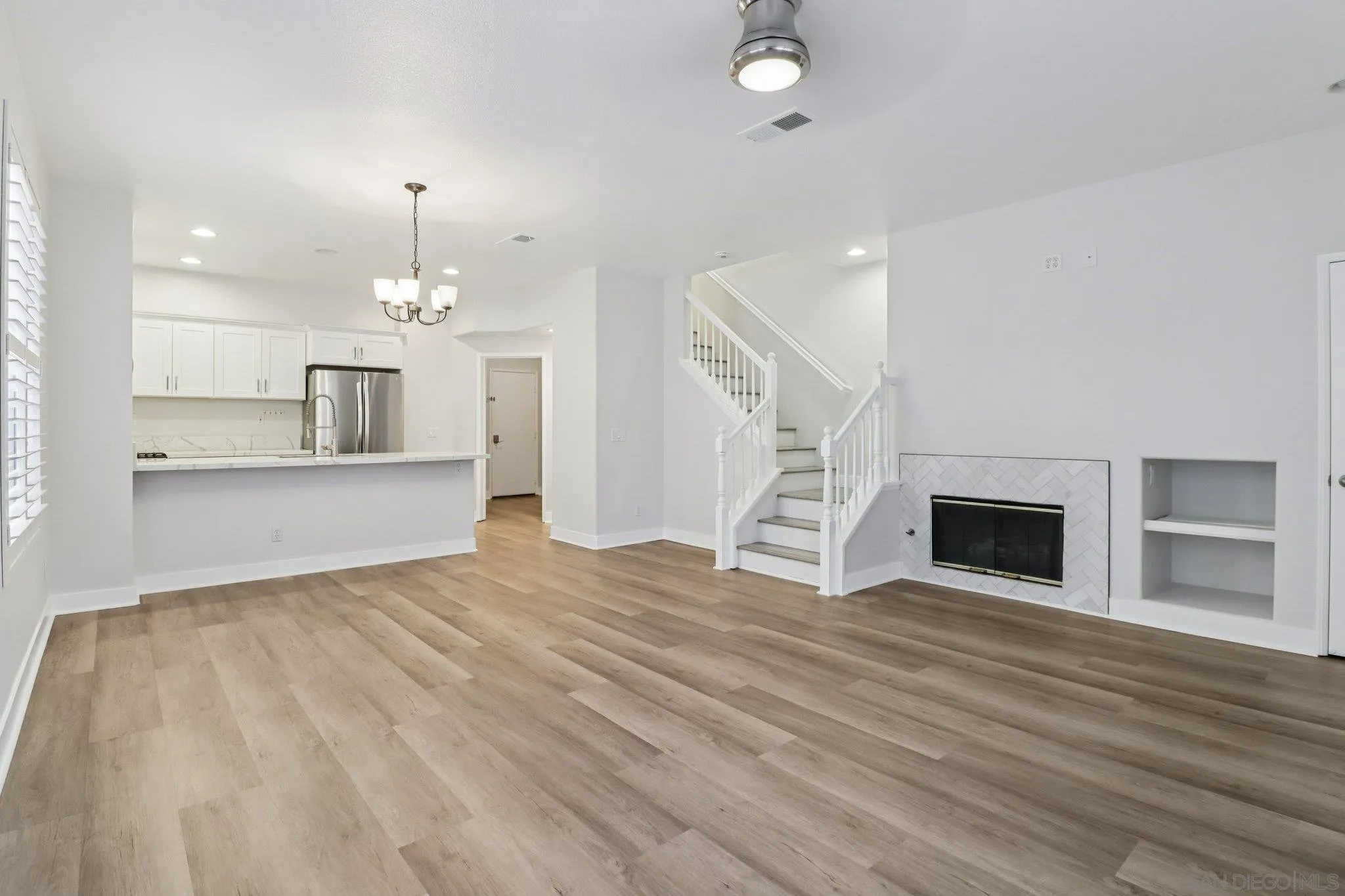 BEAUTIFULLY UPDATED OTAY RANCH CONDO IN GOLD RUSH COMMUNITY WITH AN ATTACHED ONE-CAR GARAGE AND LAUNDRY ROOM! Step into this stunning, recently remodeled condo located in the heart of Otay Ranch Village. From the moment you approach the private gated patio, you’ll notice the custom concrete and artificial turf design that gives this home impressive curb appeal. Inside, the open-concept living space welcomes you with gorgeous upgraded flooring, designer paint, and a cozy fireplace that creates a warm and inviting atmosphere. The modern kitchen is a true showpiece, featuring bright white shaker cabinets with soft-close doors, quartz countertops, a built-in beverage fridge, and stainless steel appliances. The spacious primary suite offers a relaxing retreat with a walk-in closet, an upgraded en-suite bath with a sleek shaker-style vanity, and matching quartz counters. Additional highlights include window shutters, remote-controlled ceiling fans, 4” baseboards throughout, and a dedicated laundry room conveniently located off the kitchen. The attached one-car garage includes overhead storage racks, plus there’s an assigned parking space for added convenience.