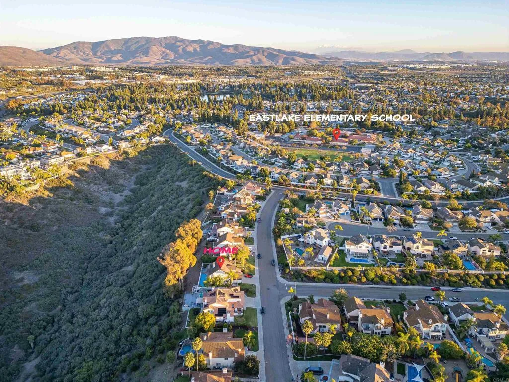 BREATHTAKING MOUNTAIN & LAKE VIEWS! This rare 0.43-acre Eastlake Vineyards home delivers true resort-style living with low HOA and NO Mello Roos. Enjoy panoramic views from your private backyard featuring a heated pool, jacuzzi, and expansive outdoor space perfect for entertaining. Inside, the home features soaring ceilings, an open floor plan, and abundant natural light. Separate living and family rooms, a large dining room, a wet bar, and an entertainers kitchen make hosting effortless. In its own private wing, the spacious ground-floor primary bedroom offers a fireplace, beautiful views, plantation shutters, and direct access to the pool. The oversized 4th bedroom can easily be used as a second primary suite, game room, or media room. A 3-car garage provides plenty of parking and storage. Located close to top-rated schools, local parks, shopping centers, and major freeways, this home offers convenience on top of exceptional privacy and views. With one of the largest lots in the neighborhood, this property is truly a standout in Eastlake.