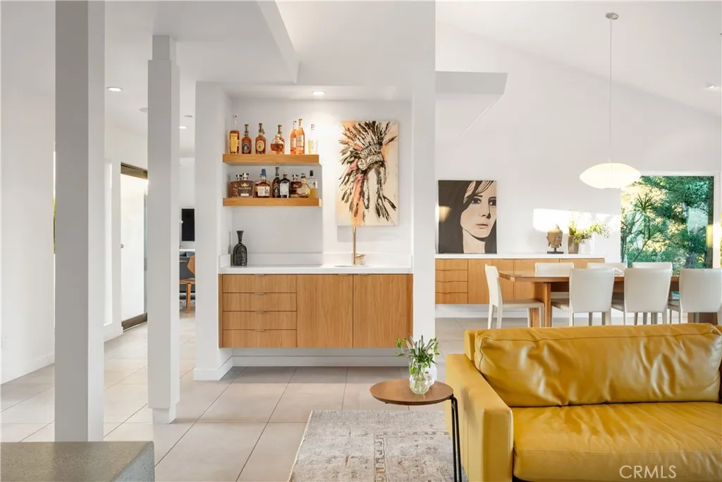 In the coveted Claraboya neighborhood on the Claremont hillside, this one-of-a-kind residence sits at the end of a quiet cul-de-sac and stands out as a true architectural showpiece. The approach is framed by drought-tolerant landscaping with sculptural cacti and mature plantings, setting a refined tone. Inside, natural light fills the home, highlighting high ceilings and continuous tile flooring. The living room features wide windows that capture scenic views and a striking walnut-paneled fireplace wall that adds depth and sophistication. The adjoining dining room offers panoramic vistas and a built-in bar ideal for hosting. The kitchen is a standout, designed with scale and quality in mind. Custom cabinetry, beautiful finishes, refined lighting, and a full suite of Thermador appliancesincluding a built-in refrigerator, double oven, range, and cooktopcreate a space that is both functional and elegant. A substantial island with a breakfast counter anchors the room, while sliding glass doors provide seamless indoor-outdoor flow. The kitchen opens to the family room, where tall ceilings and abundant light continue the homes welcoming atmosphere. The residence offers four well-proportioned bedrooms and three and a half bathrooms. The primary suite is a peaceful retreat with direct backyard access, and its ensuite bath features stone accents, dual sinks, a vanity, freestanding tub, and oversized walk-in shower. Outdoor spaces are exceptional, offering a rare dual-backyard experience. An L-shaped layout encloses a private pool courtyard with generous lounging areas that feel like