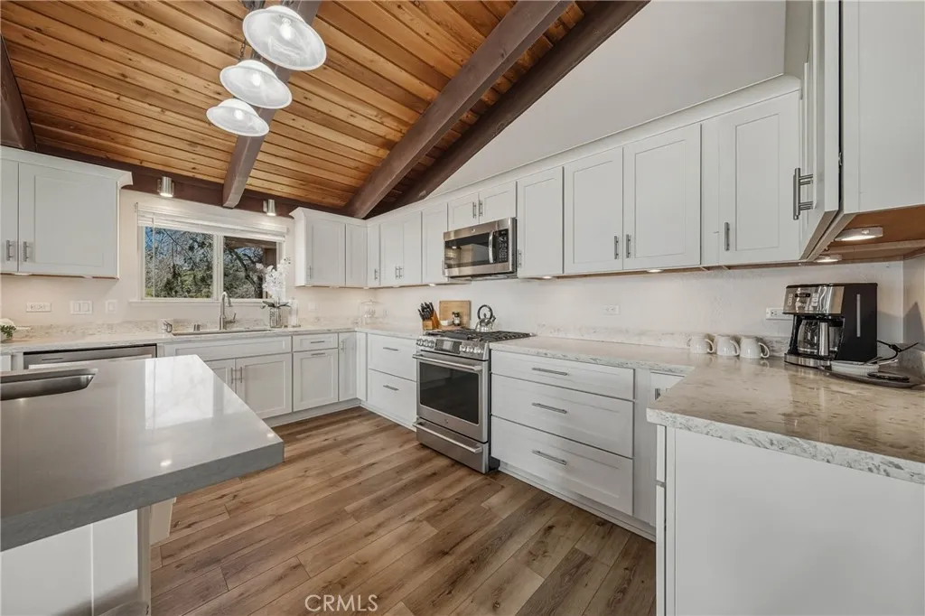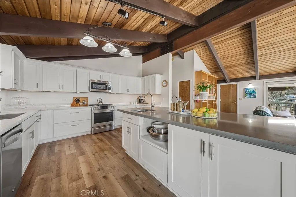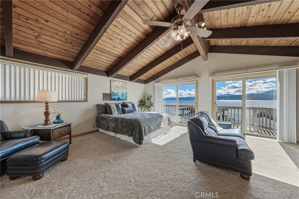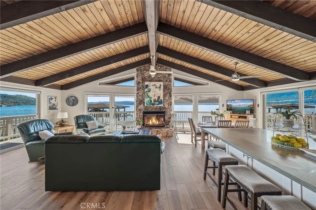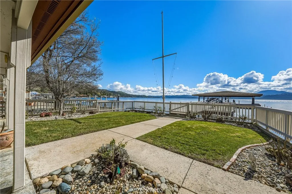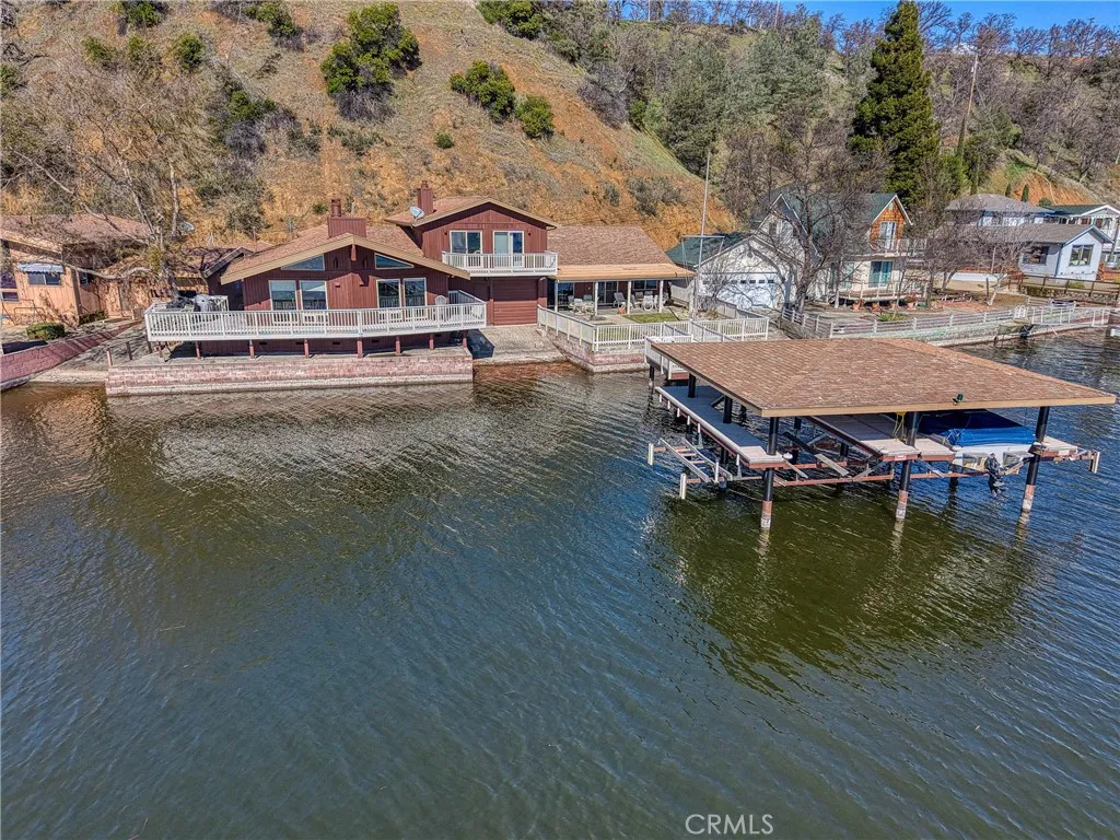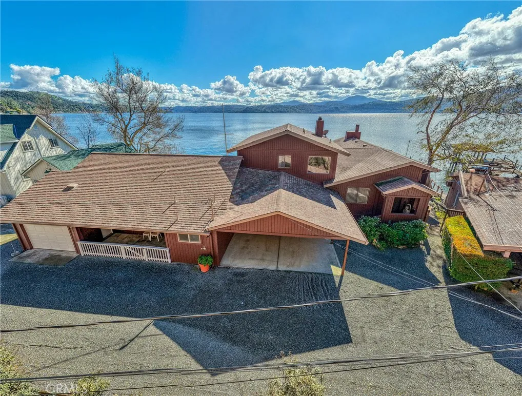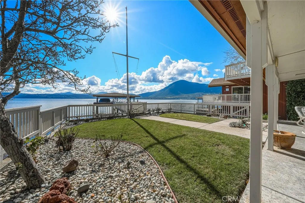This gorgeous lakefront property features multiple units, a private launch, and a dock equipped with two power boat lifts. Owned by the same family for generations, the home has been meticulously maintained and modernized for todays buyer. The main residence was designed with an open floor plan and large picture windows that frame stunning lake and mountain views. The great room boasts vaulted exposed-beam ceilings and integrates seamlessly with the dining area and a remodeled kitchen. The kitchen features stainless steel appliances, ample counter space, and an impressive center island with seating for six. A sliding door off the dining area provides easy access for outdoor dining and enjoying sunsets over Mt. Konocti. The main home offers two bedrooms. The lower-level bedroom shares a custom-tiled hallway bathroom with a walk-in shower. The upper-level primary suite includes a fireplace, private deck, laundry center, office space, and a walk-in closet. The primary bathroom features custom tiling and a soaking tub. Additionally, there is an attached oversized two-car garage with pull-through access to the private boat launch, plus a two-car carport. The second unit includes a one-car garage, two bedrooms, and one bathroom. It features an open and airy great room and a tiled kitchen. Sliding doors lead to an attached patio, a landscaped yard, and the private power dock with two boat slips. This home is situated in a prime location with deep waters. Located only 2.5 hours from San Francisco and 2 hours from Sacramento, this property offers seamless access to Clear Lake, where