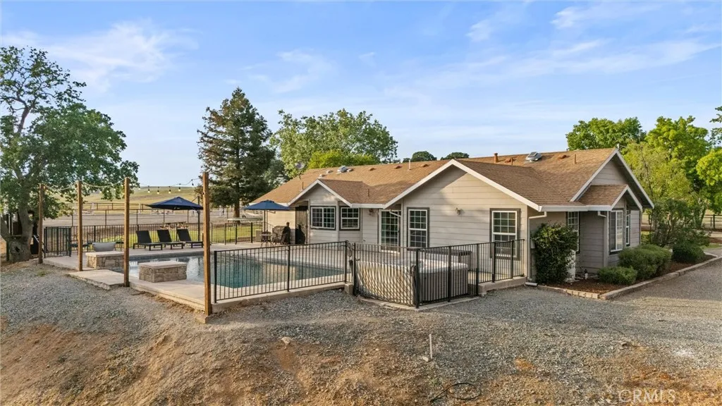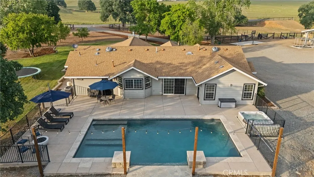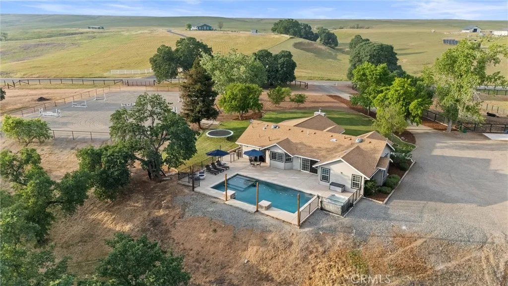 Welcome home to this exceptional country equestrian estate, perfectly nestled in the highly desirable Thomas Creek Estates. This stunning 4-bedroom, 3-bath residence offers approximately 2,690 square feet of beautifully designed living space, blending comfort, functionality, and upscale country charm. This country retreat is located on almost 14 acres of gently rolling hills, which is completely fenced for your animals. Step inside to soaring vaulted ceilings, a striking custom stone fireplace, and an open-concept floor plan that creates a warm yet grand atmosphere. The home features rich hardwood floors, custom cabinetry, and a spacious kitchen-dining-living area, ideal for entertaining family and friends. Open the glass doors to an amazing backyard experience with your own gorgeous pebble-finish pool with elegant waterfall features, creating a resort-like setting right at home. For the hobbyist, rancher, or entrepreneur, the impressive 2,700 sq. ft. fully insulated metal shop is a standout feature, with an additional 274 sq. ft. attached covered areaperfect for RV parking, equipment storage, or easily convertible into horse paddocks. The three large doors on the shop make it easy to move in and move out your ATV's, boats, trailers or tractors. Equestrian enthusiasts will appreciate the thoughtfully designed amenities, including three fenced pastures with smooth wire, a private riding arena with pipe fencing, with plenty of room to roam, cross ties and a concrete wash rack. There is a large dog yard set up behind the shop for your cow dogs or 4-H animals. The property is f