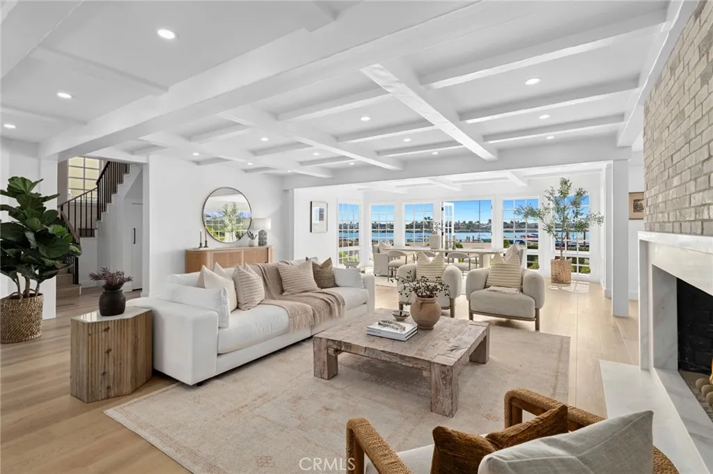Welcome to your dream waterfront retreatan iconic residence on picturesque Mothers Beach. Perfectly positioned along Newport Harbor, this rare bayfront estate offers timeless design, modern upgrades, and a lifestyle that captures the very best of coastal Orange County. Spanning 4,707 square feet on an expansive 7,560 square foot lot, the home enjoys breathtaking views of the harbor entrance, ocean, and Catalina Island. From sunrise to sunset, youll experience front-row seats to one of Newport Beachs most desirable vantage pointsincluding the Newport Beach Christmas Boat Parade. Renovated in 2025, the home offers five bedrooms, plus an office, and 4.5 baths. Two bedrooms with en-suite bathrooms are located on the main level, one of which features direct exterior accessideal for guests or multi-generational living. The family room, anchored by a marble-surround fireplace and French doors, flows seamlessly to the back patio. Wide-plank floors, charming beamed ceilings, and abundant windows create a warm, light-filled atmosphere throughout. The chefs kitchen is both functional and elegant, featuring a Wolf range, Sub-Zero refrigerator, center island, and a breakfast nook ideal for casual dining or entertaining. The primary suite is a true sanctuary, complete with breathtaking harbor views, a spacious walk-in closet, and a spa-inspired bath with soaking tub, oversized shower, dual vanity, and sauna. Outdoor living is equally impressive. A spacious patio and lawn extend to the sand, complete with two fireplaces and a built-in BBQan ideal setting for entertaining year-round. Addit