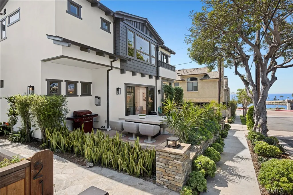 Perfectly positioned in the coveted 200 block just one home off Ocean Boulevard, this exceptional coastal residence offers 4 bedrooms and 4.5 bathrooms. Behind its sprawling 50-foot-wide facade, the home presents a sophisticated sense of scale and volume adorned by soaring high-paneled ceilings, rich wood flooring, and curated designer finishes throughout. Natural light filters across open living spaces, enhancing the warmth and elegance of every room. Highlighted by a fireplace, the great room is framed by disappearing glass doors that seamlessly extend into a front courtyard, blending indoor comfort with coastal ambiance and soft ocean views. Designed for elevated entertaining and everyday luxury, the dining room features a custom designer wallpaper accent wall, adding texture and artistry to the space. The adjacent chefs kitchen is appointed with sprawling quartz countertops, a six-burner range, Sub-Zero refrigeration, a secondary integrated wall oven, water filtration, instant hot water, and a generous center island with a built-in beverage fridge and breakfast bar seating. Three secondary ensuite bedrooms include a highly desirable main-level en-suite bedroom with a walk-in shower, offering ideal flexibility for guests or extended stays, complemented by a well-appointed laundry room and abundant storage throughout. Spanning the width of the oversized lot, the primary suite showcases expansive views, an oversized walk-in closet, a fireplace dually serving a spa-caliber bath with a soaking tub, multi-head walk-in shower, dual vanity, and a privacy commode. Above, the roo