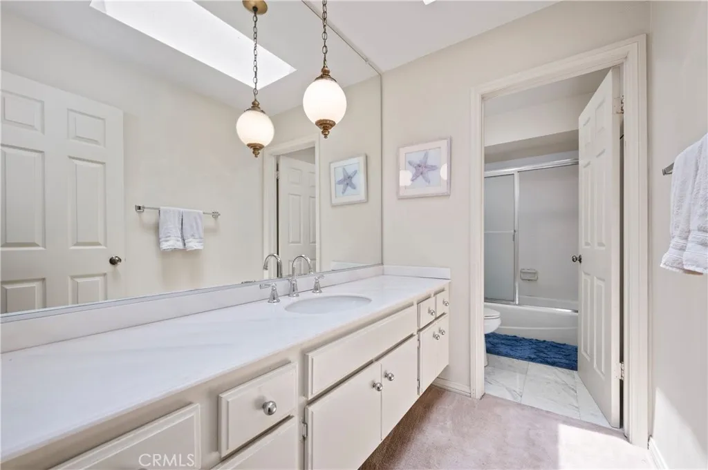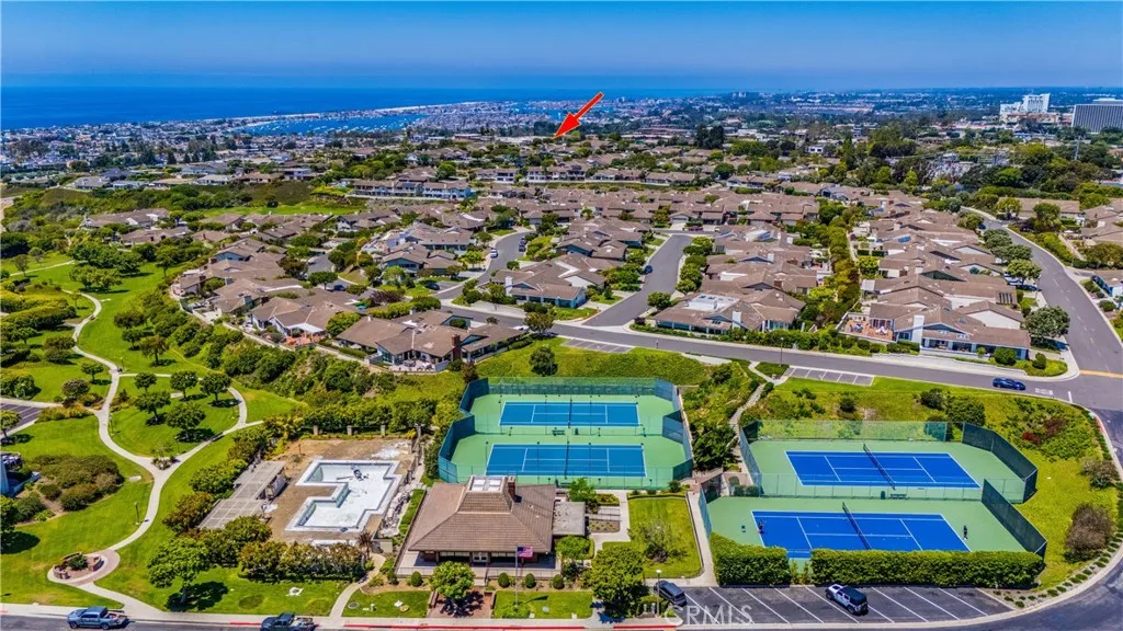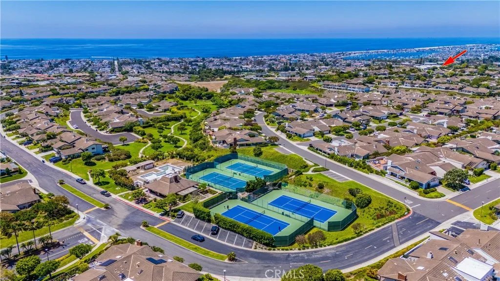 Ocean View in Jasmine Creek! This single level 3-bedroom, 2-bathroom home enjoys sweeping coastal views that stretch across the horizon. Situated on one of the larger lots in this sought-after gated community, the 2,241 square foot home presents a rare opportunity to enjoy coastal living with room to personalize. Open the front door and step into a spacious living room with raised ceilings and scenic ocean views. A connecting dining area captures the same coastal backdrop and flows into the centrally located kitchen. Just off the kitchen is a second living space, also oriented toward the ocean view, creating multiple areas to relax and entertain. Expansive windows and skylights throughout the home highlight natural light and the picturesque setting. Glass doors along the back of the home open to the yard, enhancing the indoor-outdoor connection and allowing the ocean view to take center stage. The primary suite features high ceilings, large closets, a spacious bathroom, and a private enclosed patio with convenient access to the front of the house. Additional highlights include a long driveway with parking for multiple vehicles, a two-car garage with built-in storage, and front landscaping maintained by the association. Jasmine Creek offers amenities including 24-hour guarded access, pools, tennis courts, a clubhouse, and beautifully maintained walking paths. Located just minutes from the beach, PCH, CDM Village, Fashion Island, top-rated schools, the 73 freeway, and John Wayne Airport, this home captures the best of coastal California living.