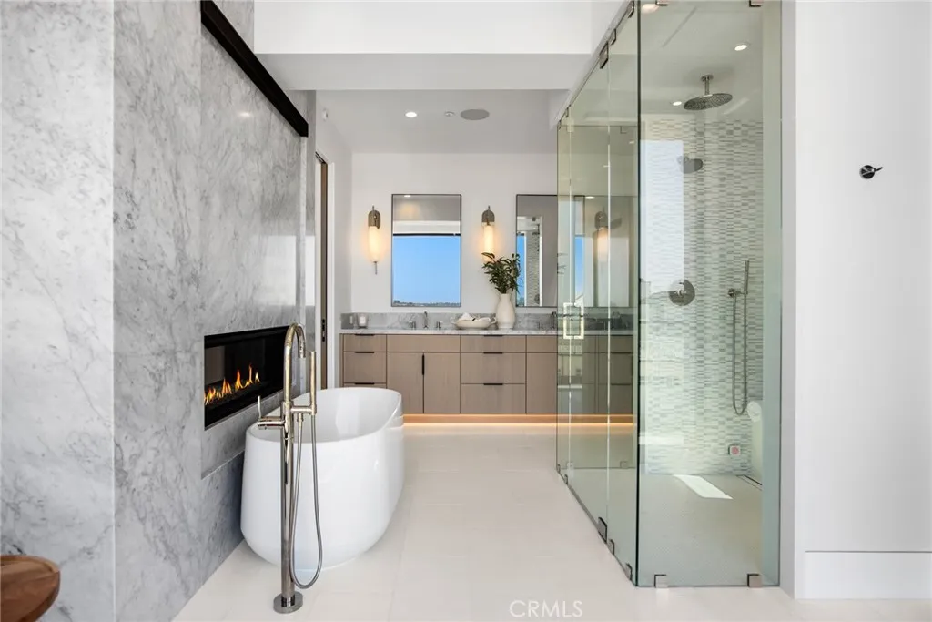 A Rare Coastal Masterpiece in the Heart of Corona del Mar Village. A true rarity in coastal living, this newly constructed residence blends exceptional design, craftsmanship, and location into a singular offering. Situated on an expansive 45-foot-wide lot, the home features 4 bedrooms and 4.5 baths across three meticulously crafted levelseach accessible via private elevator. Born from a remarkable collaboration between DeCarrier Design, Montesantos Builders, and Teale Architecture, every element of this home reflects an uncompromising attention to detail and a level of quality reserved for the most discerning buyers. The primary suite serves as a private sanctuary, offering a luxurious retreat with a spa-inspired bath featuring an oversized steam shower, a soaking tub with calming water views, and a dual-sided fireplace that warms both the bedroom and bathroom. Each of the four ensuite bedrooms has been thoughtfully designed to offer privacy and comfort. Floor-to-ceiling retractable glass doors reveal sweeping views of the harbor and ocean, effortlessly merging indoor and outdoor living. At the heart of the home, the chefs kitchen showcases elevated function and designwith a dramatic quartzite-wrapped island, oversized Sub-Zero refrigerator and freezer, Wolf range, walk-in pantry, wine storage, and a built-in Miele coffee system. Crowning the home is an expansive rooftop deck with panoramic views of the ocean, harbor, and city lightsan ideal setting for both relaxed lounging and elegant entertaining. Located just one block from the beach and a short walk to the Villages cel