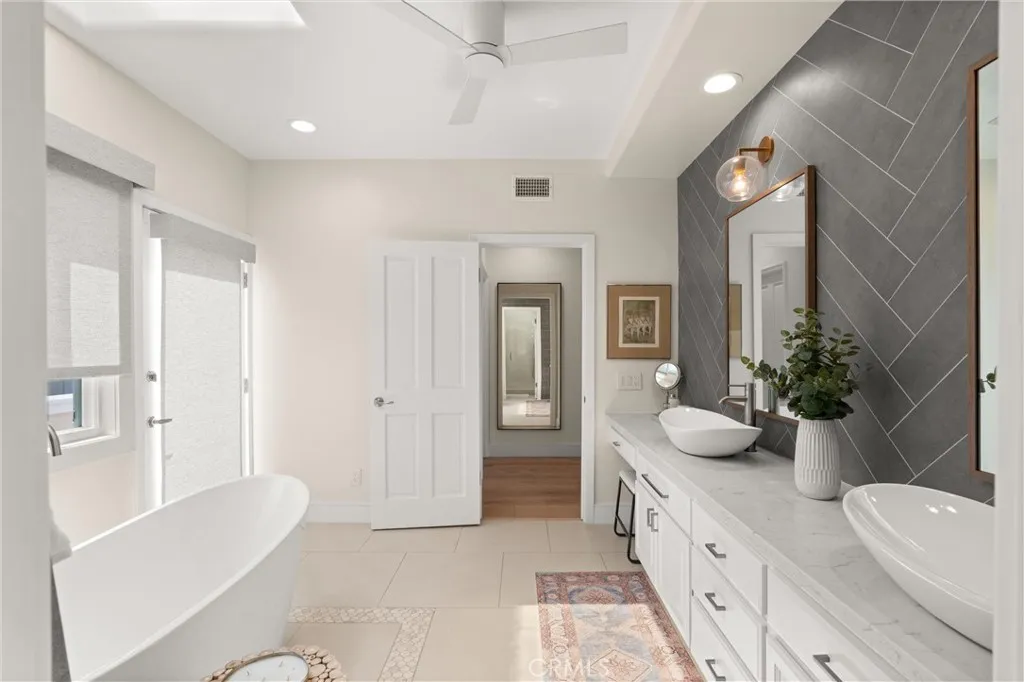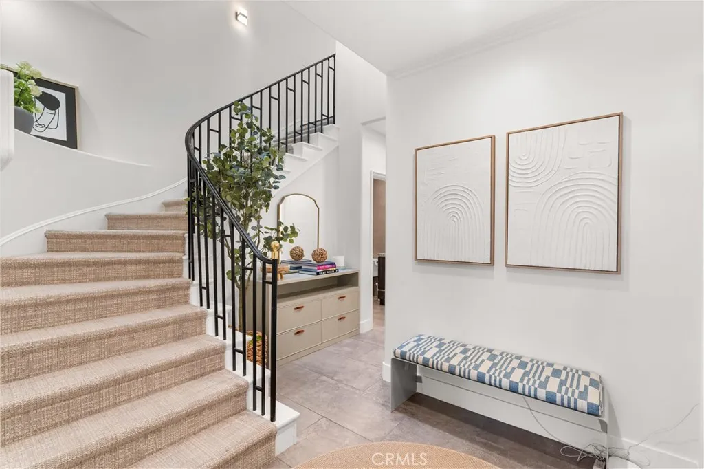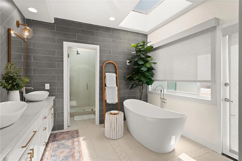 Experience iconic Corona Del Mar living in this completely reimagined 3-bedroom, 2.5-bath ocean-view home, offering unparalleled comfort and styleas well as parking for up to 9 cars! Situated on a quiet cul-de-sac just one block from the ocean on the coveted 300 block of Carnation Ave. and featuring stunning panoramic views of Newport Harbor, Fashion Island, and the Pacific Ocean, this idyllic home redefines the modern seaside lifestyle. Step inside to discover a light-filled, open-concept layout enhanced by designer finishes throughout including wide-plank wood flooring, modern lighting, custom paint, and ultra-quiet ceiling fans. The spacious living room features a wall of custom windows that invite natural light and fresh ocean breezes, complemented by a new contemporary fireplace with wood mantle. The gourmet chefs kitchen is a showstopper, equipped with stone countertops, modern cabinetry accented by stylish herringbone backsplash, an oversized island with waterfall edges, and top-of-the-line stainless steel appliances: 6-burner range with double oven, hood, microwave, warming drawer, oversized refrigerator, and wine fridge, ideal for culinary enthusiasts. A chic wet bar with a second wine fridge and a cozy office nook completes the space, perfect for both entertaining and everyday living. Upstairs, the resort-inspired primary suite features a cozy fireplace, wall-mounted flat-screen TV, Walk-In Closet, and built-in designer wardrobes with elegant lighting. The spa-like en-suite bath includes dual vanities, a soaking tub, a walk-in shower with skylight, and custom tile