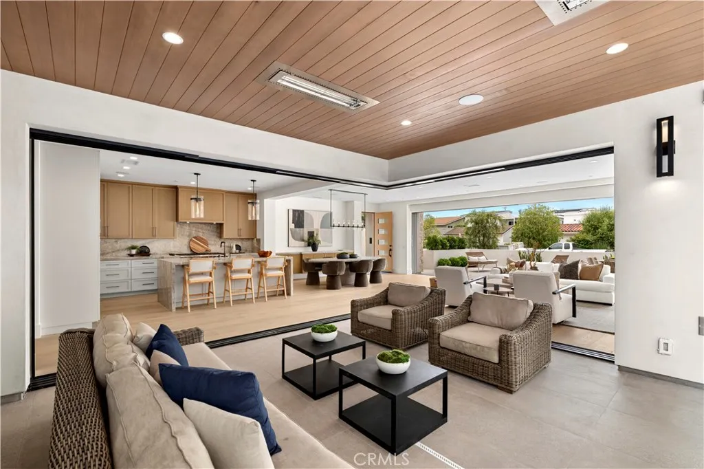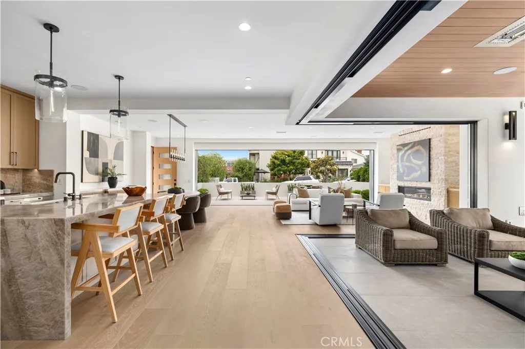 Setting the bar for perfection, this brand-new masterpiece by SONIL Custom Homes designates its own class. Designed by architect Mark Teale, the deluxe front residence provides an exhilarating layout with four ensuite bedrooms, 2 half bathrooms, mud room, and an expansive rooftop deck with ocean views. Seamlessly blending indoor and outdoor living, automated La Cantina courtyard and huge front doors open at the touch of a button, capturing the quintessential Village lifestyle. The immense kitchen was attentively designed with Quartzite counters, custom Rift Oak cabinetry and drawers, massive island with seating; and overlooks the living room with limestone fireplace, dining room with reeded buffet cabinets. An oversized central courtyard with cedar inlay ceiling and Infratech heaters is a perfect place for an evening cocktail. A Wolf eight burner stove and oven, side by side 36 Subzero refrigerator/36 Subzero freezer and top of the line Cove dishwasher anchor the kitchen appliances. The luxurious primary retreat presents thoughtful built-ins, a fireplace, organic illumination, sprawling private deck, finished custom walk-in closet, and a spa-like master bathroom with two separate vanities, oversized walk-in shower, and independent soaking tub. Every detail in this expansive home was meticulously selected and eminently executed. From soaring ceilings, quartzite, marble, European white oak flooring to walls of windows and disappearing doors, the design integrates perfectly with impeccable craftsmanship.
