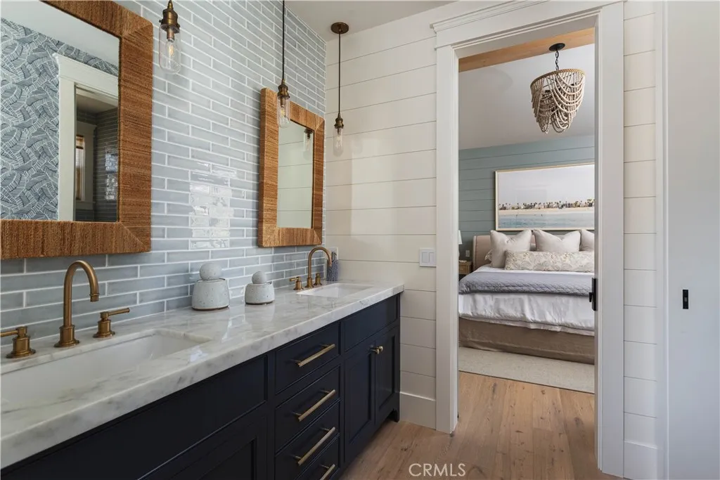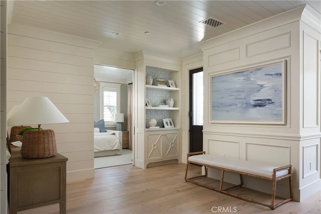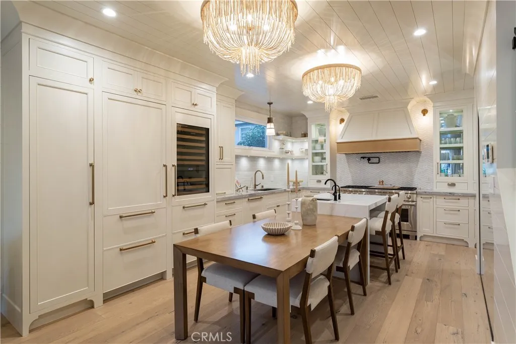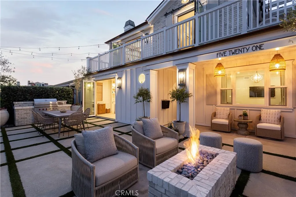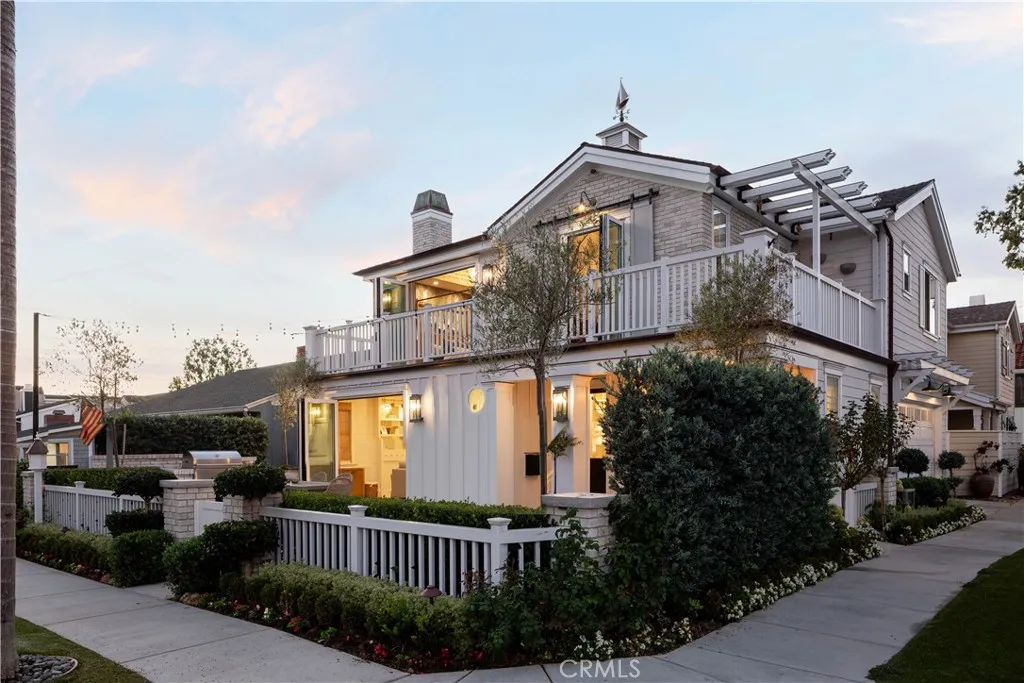 Perfectly positioned on a rare 45-foot-wide corner lot, 521 Poinsettia is a fully reimagined coastal residence blending timeless design with modern luxury in the heart of Corona del Mar Village. Reconstructed in 2020, the home spans approximately 2,167 square feet of meticulously curated living space with four bedrooms and three full bathrooms. The main level offers a seamless flow between the light-filled great room, dining area, and guest bedroom, all opening through dual accordion doors to an expansive front patio for effortless indoor-outdoor living. Designed for both daily enjoyment and entertaining, the patio features a built-in Wolf barbecue and outdoor kitchen, fire pit, dining area, privacy hedging, and a charming covered porch. The kitchen is a chefs showcase appointed with Sub-Zero, Wolf, and Miele appliances, custom cabinetry and countertops, Brizo fixtures, artisan tilework, a whole-house water filtration system, and a climate-controlled wine room. The first-floor bath is finished with Newport Brass and Toto fixtures. Upstairs, the primary suite serves as a tranquil retreat with vaulted ceilings, custom built-ins, abundant natural light, and a private wraparound balcony overlooking the Village. The spa-inspired bath features dual vanities, a soaking tub, a walk-in shower, and elegant designer finishes. Two additional bedrooms share a spacious Jack-and-Jill bath, while a conveniently located second-level laundry room completes the floor. Additional enhancements include a finished two-car garage with epoxy flooring and built-ins, newer roof, upgraded electrical a