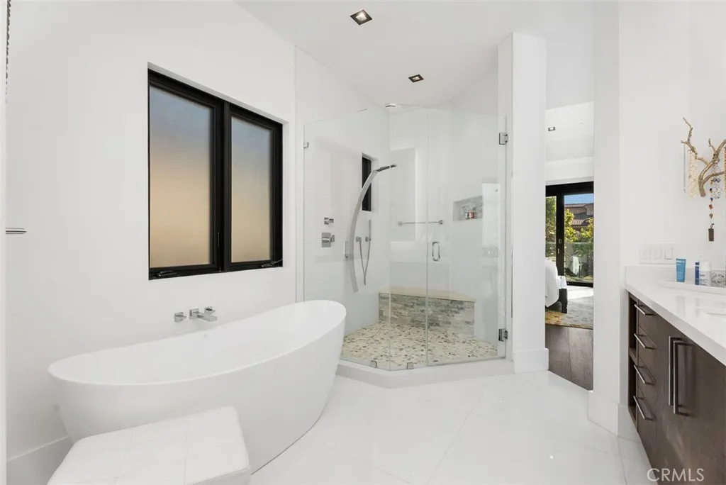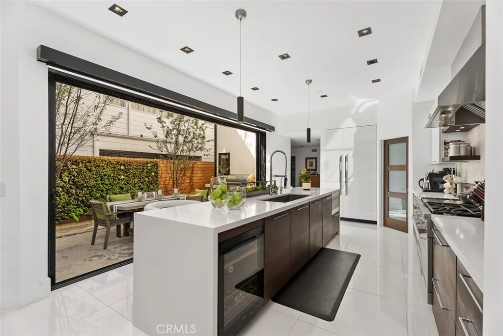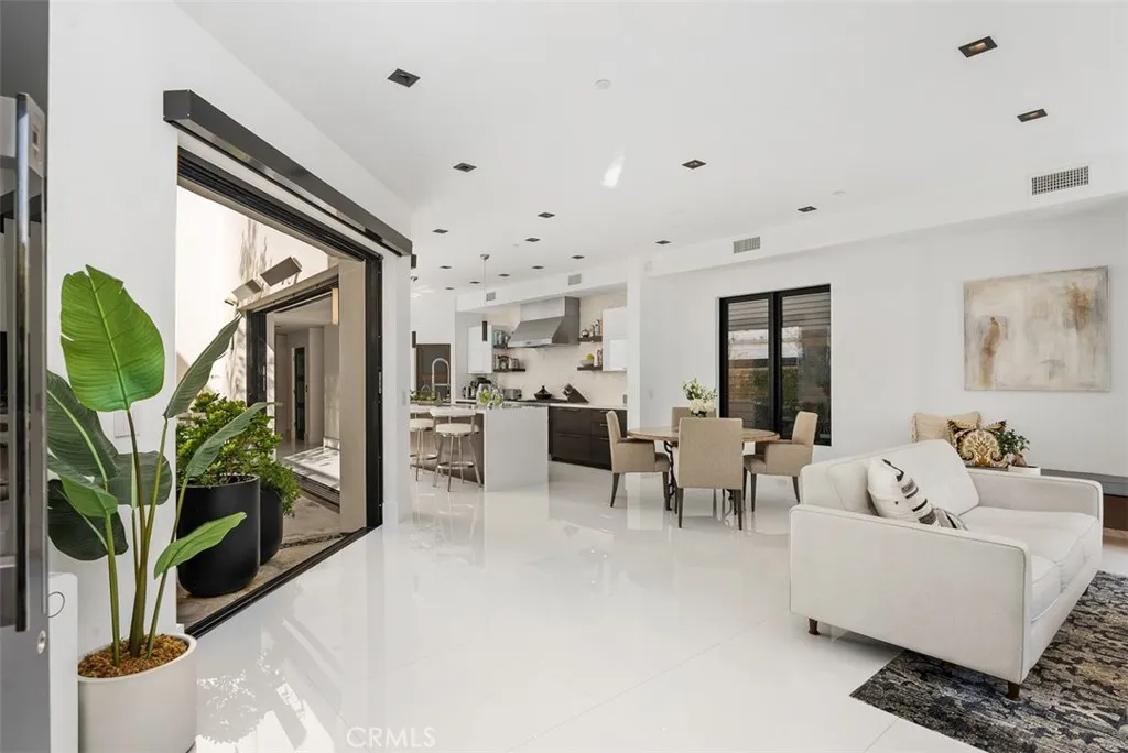 Completely rebuilt in 2017, this single-family residence in the heart of Corona del Mar Village offers approximately 3,300 square feet with four bedrooms and five bathrooms, thoughtfully designed for effortless living and elevated coastal style. The main level is defined by an expansive open layout where the kitchen, living, and dining areas connect seamlessly, creating a natural flow for both everyday living and entertaining. Expansive disappearing glass walls and La Cantina folding doors open to multiple outdoor patios, blending indoor and outdoor living in a way that feels both spacious and inviting. A main-level bedroom or den adds flexibility, while a private elevator provides convenient access to every floor, an uncommon and highly desirable feature in the Village. The primary suite is exceptionally spacious, offering a true retreat with generous scale and a sense of separation. The spa-inspired bath features a soaking tub, separate walk-in shower, and a large walk-in closet. Two additional bedrooms are located on the same level, each with their own ensuite bathrooms, offering both comfort and privacy. The upper levels are thoughtfully arranged with refined finishes and a layout that balances openness with privacy. Above, the rooftop offers two distinct deck spaces, creating a true extension of the home, ideal for entertaining or relaxing while taking in panoramic views of the Corona del Mar Village skyline with the ocean beyond. Additional highlights include a spacious two-car garage, smart home features, and the rare benefit of a detached single-family residence off