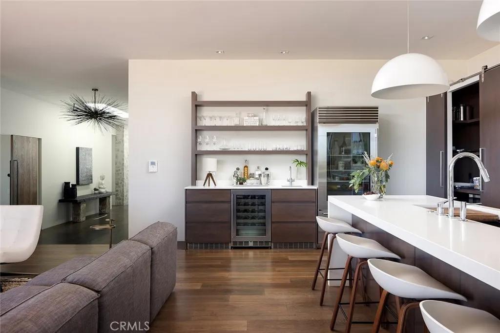 Sitting on a bluff and framed by sweeping views and of Newport Harbor, the Pacific Ocean, and golden evening sunsets, 624 Ramona captures the spirit of refined coastal living in Corona del Mars coveted Irvine Terrace. Every space of this single-level contemporary masterpiece is curated with intentionbathed in natural light, layered in texture, and designed for effortless indoor-outdoor flow. The private entry opens to a stunning great room where floor-to-ceiling glass doors dissolve the boundary between inside and out. An open kitchen anchors the space with waterfall-edge counters, professional appliances, and a wet barsetting the stage for everything from intimate dinners to lively gatherings under the stars. The primary suite is a sanctuary of calm, with a fireplace, retractable glass doors framing ocean views, and a spa-worthy bath that spills out to a private garden patio. Two fully appointed en-suite bedrooms, a media room, an office with room for guests (or optional fourth bedroom), and a dedicated massage room with infrared lighting offer both versatility and luxury. Every finish, fixture, and design element reflects the highest level of craftsmanshipresulting in a home that feels as effortless as it is elegant. Perfectly positioned moments from local yacht clubs, Newport Beach Country Club, Balboa Island, and all of the best shopping and restaurants, this residence defines the art of coastal California living.