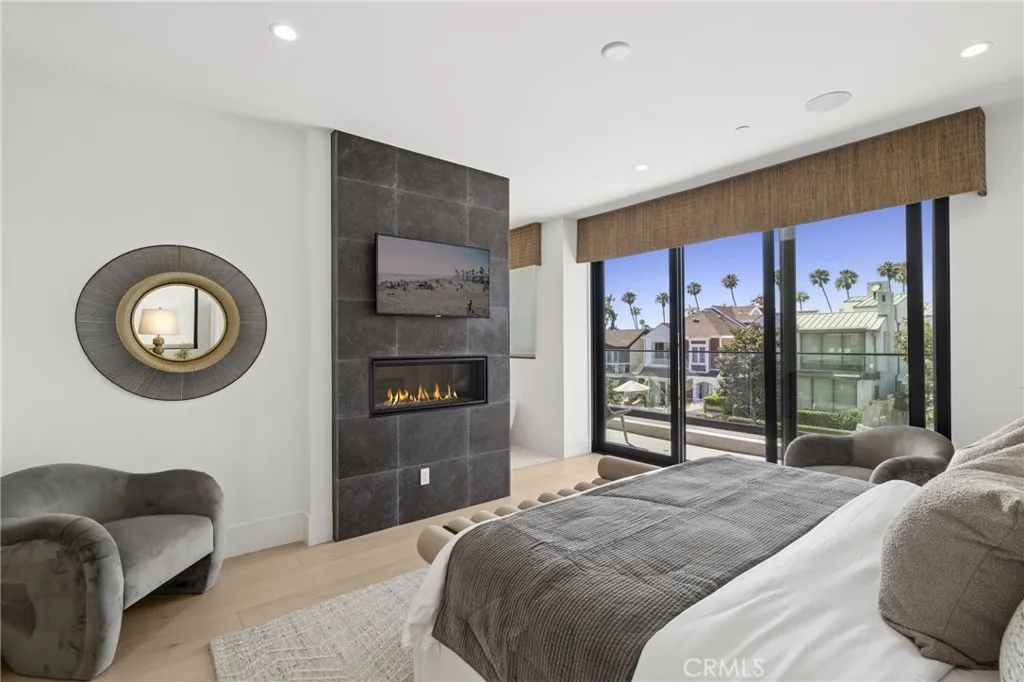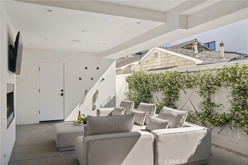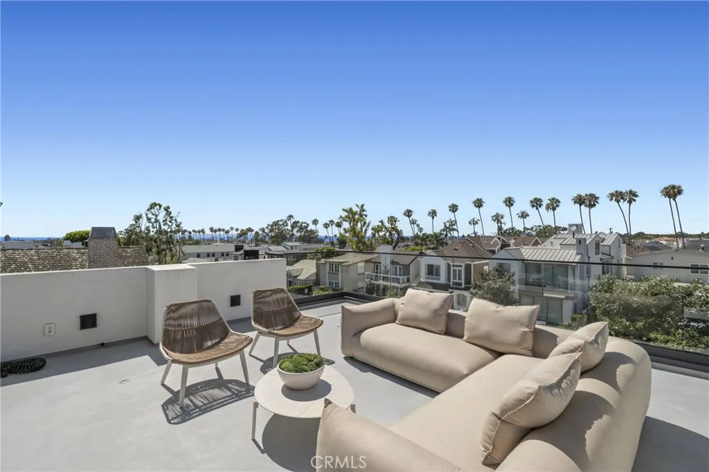 Crafted by JFB Custom Homes, this striking coastal residence showcases a refined mix of materials, creating a rich and textural architectural statement. Attentively designed for effortless indoor-outdoor living, the open floorplan is complemented by light hardwood flooring throughout. In the living room, a dramatic fireplace is paired with disappearing walls of glass that open to a private quintessential front courtyard framed by lush hedging. The open concept kitchen is beautifully appointed, featuring a generous island with breakfast bar seating, sprawling quartz countertops, abundant custom cabinetry, and premium appliances, including a 6-burner range with griddle and dual ovens. Just off the dining area, a stunning California room with its own fireplace offers a seamless transitional space, complete with direct garage access. Upstairs, the primary suite is thoughtfully scaled as a private retreat, offering a spacious walk-in closet, an impressive viewing balcony, and a dual-sided linear fireplace shared with the spa-inspired bath. The bathroom is elegantly arranged with a freestanding soaking tub, expansive walk-in shower, and a private water closet. Two additional ensuite bedrooms provide comfortable, well-appointed accommodations, including one with a generous private patio designed to capture the ocean breeze. Above it all, a sprawling rooftop deck showcases panoramic ocean and city light views and is plumbed for gas, perfectly suited for elevated entertaining. Additional highlights include a full-size laundry room, a designer powder bath with a stone ramp sink, whol