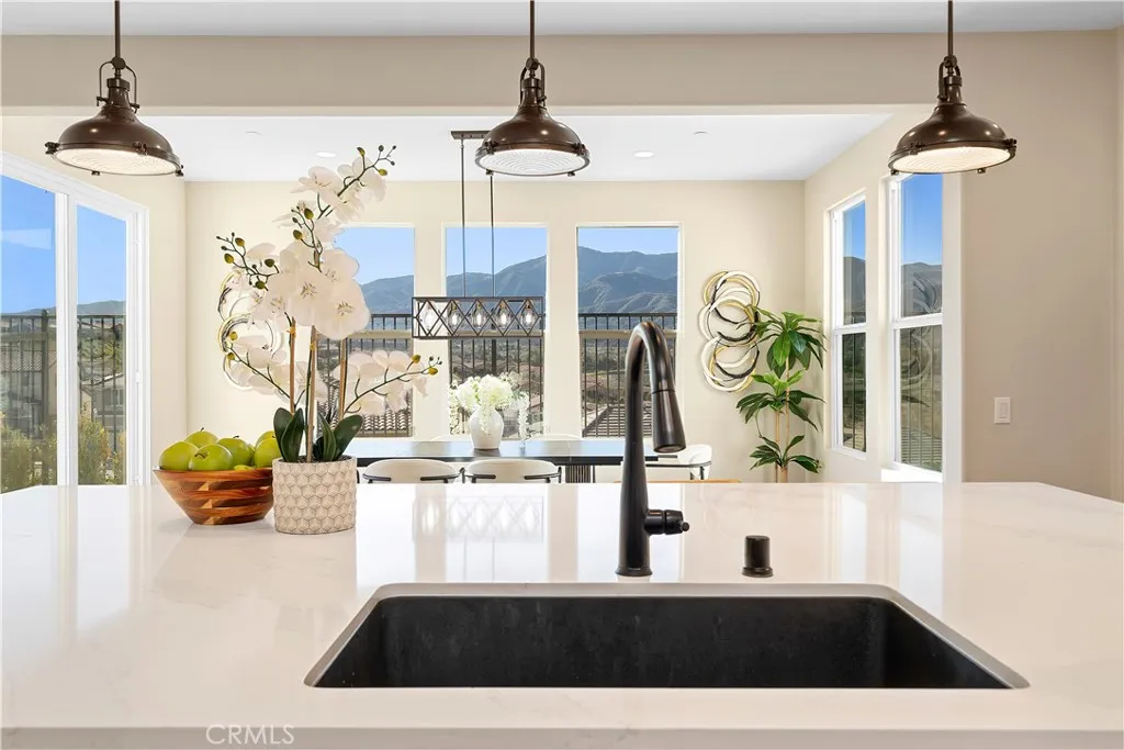 Million-Dollar Views Without a Million-Dollar Price Tag. Experience luxury living in the exclusive, gated community of Terramor. This stunning home offers breathtaking sunrise-to-sunset views of the Cleveland National Forest from the living room, morning/dining area, and upstairs bedrooms. Thoughtfully upgraded throughout, it features custom, low-maintenance landscaping in both front and back yardsan advantage over new builds. The chefs kitchen is a true centerpiece, complete with quartz countertops, a double wall oven, 5-burner gas cooktop with custom exhaust hood, self-closing cabinets with roll-out shelves, and two spacious walk-in pantries. The main level showcases luxury vinyl plank flooring, 8" baseboards, and built-in speakers in the living spaces, loft, and even the garage. A home office/den doubles as a potential fifth bedroom, and a nearby storage room can easily be converted into a full bathroom. Upstairs, you'll find a generous loft, a convenient laundry room with cabinets, four spacious bedrooms including the primary suite, and a second full bathroom. All closets are oversized, and upgraded bronze hardware adds a stylish finishing touch throughout the home. Enjoy nearby shopping and dining at The Shoppes at Sycamore Creek, Toms Farms, Dos Lagos, and The Crossings, and benefit from highly-rated schools in the Corona-Norco School District. Terramor offers resort-style amenities including a clubhouse, pool, spa, parks, scenic hiking trails, dog parks, and more. This move-in ready resale home combines luxury, convenience, and lifestylewithout the wait or cost of a