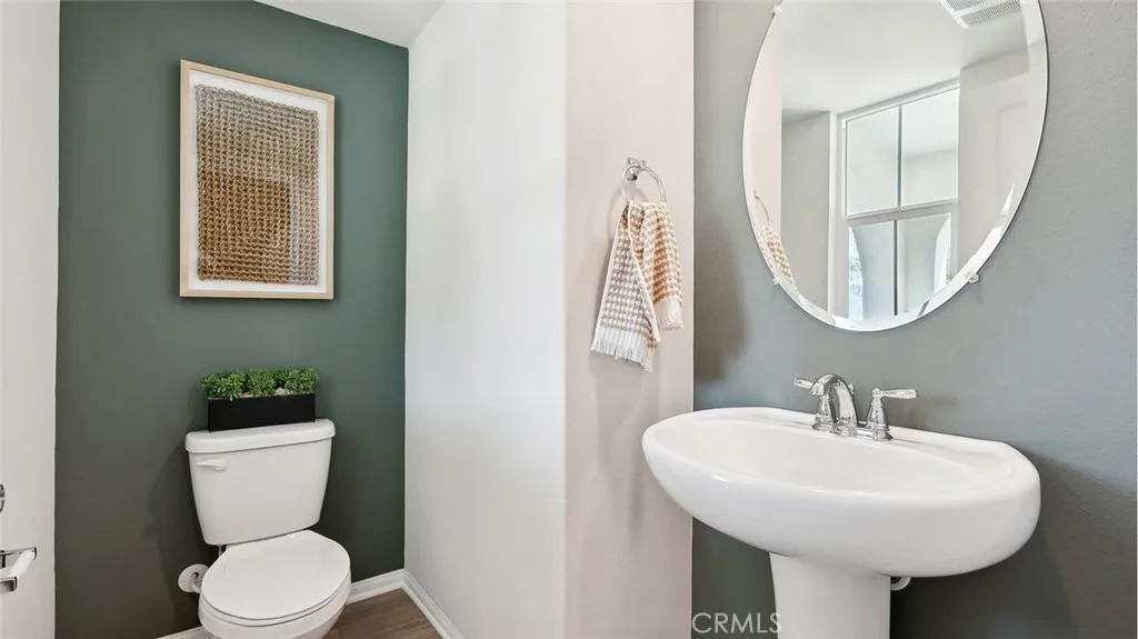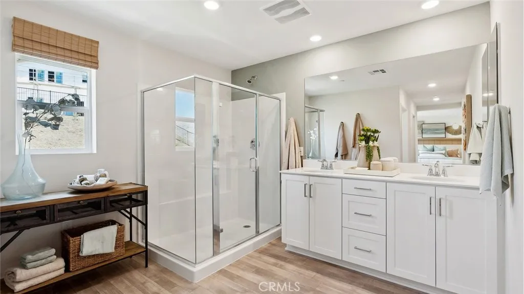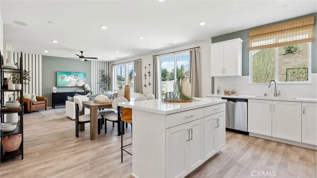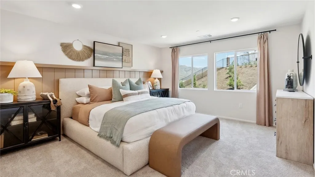 This 1,983 square foot California Tuscan facade home on a corner lot with no home directly behind features an open floorplan. Downstairs is a great room that flows into the dining area and the island kitchen with Quartz countertops, full backsplash, built-in stainless steel appliances, and a powder bathroom off of the entry. Upstairs you will find the main bedroom with an ensuite bathroom and two walk-in closets, two additional bedrooms, a loft and the laundry room. There is white shaker-style cabinetry throughout and the buyer still has time to select flooring. This home has Smart Home Technology, solar installed, and a 2-car attached garage pre-plumbed for an electric car. The front yard is fully landscaped and irrigated. This home has easy access to shopping, entertainment, parks, walking trails and the I-15 freeway. We anticipate the home will be ready for move in July 2026.