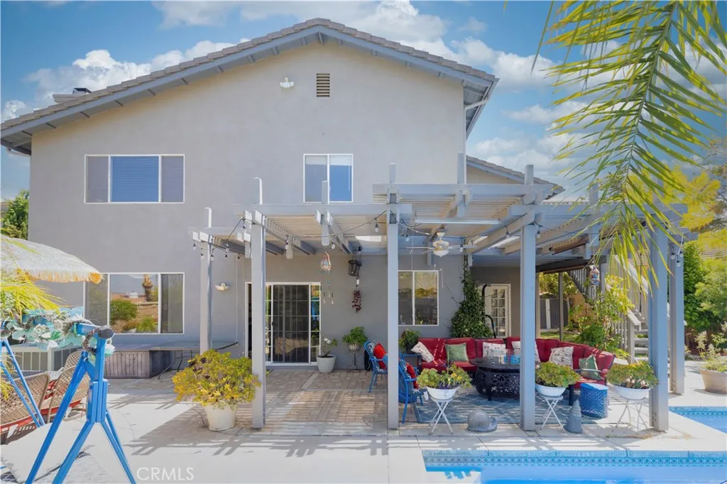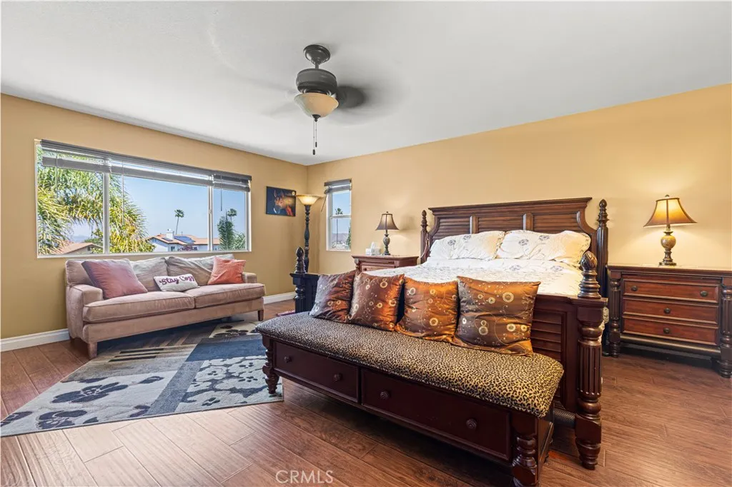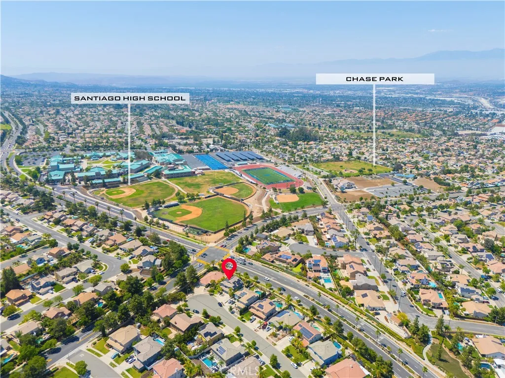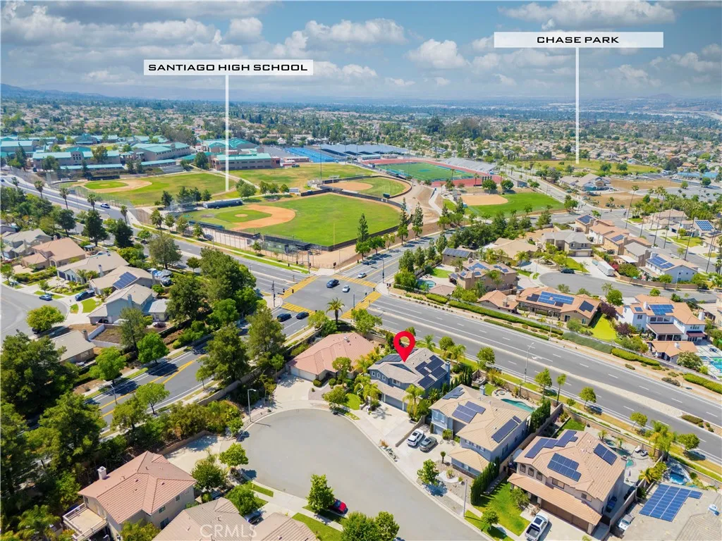 Welcome to this beautiful Home tucked away on a peaceful cul-de-sac in the highly desirable South Corona neighborhood! This well-maintained property features a sparkling pool and spa, 4 bedrooms (including one conveniently located on the main floor), 3 bathrooms, and a spacious upstairs loft perfect for a home office, media room, or play area. Enjoy the open and airy floor plan with vaulted ceilings and oversized windows that flood the home with natural light. The kitchen opens to the family room and is equipped with wood cabinetry, stainless steel appliances, and a walk-in pantry, ideal for everyday living and entertaining. The cozy family room includes a custom fireplace, and theres also a formal living and dining room for hosting guests. The primary suite boasts a large walk-in closet, an en-suite bathroom, and a balcony with gorgeous city light views. A dedicated laundry room with a built-in cabinets adds to the homes functionality. Step outside into your private backyard oasis featuring a newly epoxy-coated pool and spa, perfect for relaxing or entertaining friends and family. This home offers a 2-car attached garage, plus a third garage that has been thoughtfully converted into an office spacegreat for working from home or pursuing creative projects. Additional features include a solar panel system and security cameras for added comfort and efficiency. Located near top-rated schools, parks, shopping, dining, and with easy access to the 91 and 15 freeways, this home has everything youve been looking for. Dont miss the opportunity to make this stunning home your ownsche