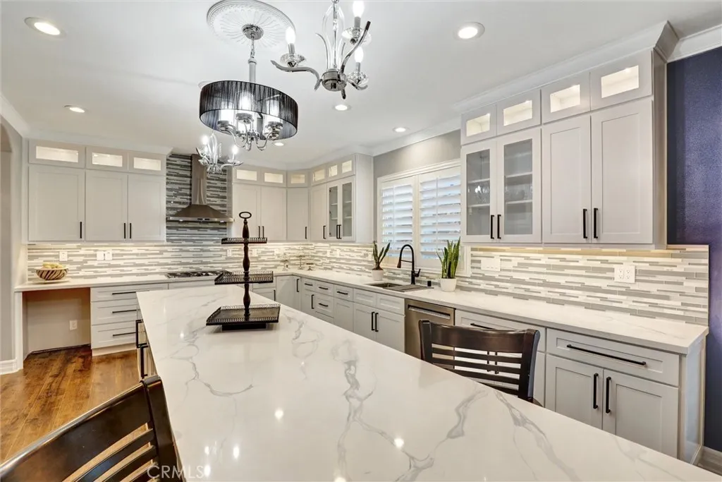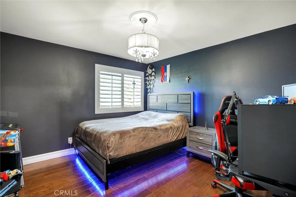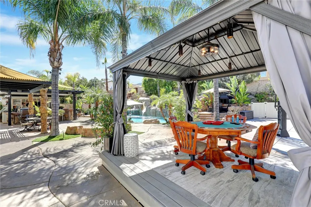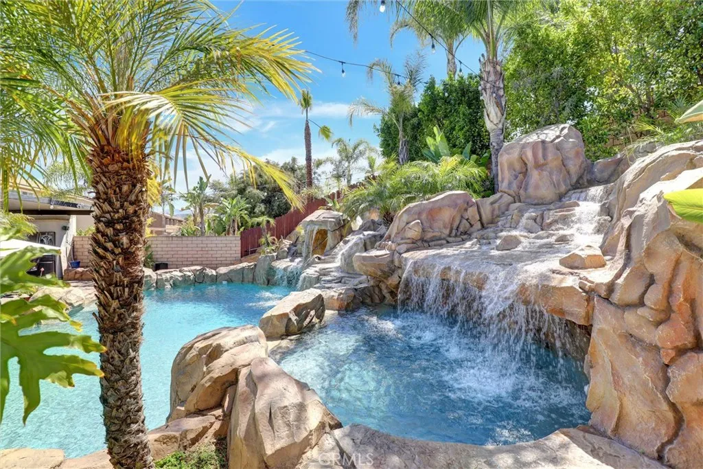 Back to Market, Beautiful Upgraded Pool home in South Corona. Owned Solar, " 42 panel", Clear Termite, Total of 7 Rooms, 5 Bedrooms, office Downstairs, Bonus room Upstairs. 3.5 Baths, Fully upgrade thought the house, Over size Back yard with Amazing updated Pool. Full size Bar and kitchen outside. Brand New Kitchen Cabinets & Granite Counter Top. Newer hard wood flooring thought. Starting from its eye-catching curb appeal this stunning home will take your breath away. The home features central AC, wainscoting, lighted crown molding throughout, granite counters and cathedral ceilings. Through the custom front door, you are welcomed into an elegant foyer leading you to the gorgeous formal living room with a crystal chandelier, fireplace and formal dining room with wine bar and pantry. double oven, eating area perfect for hosting family and friends. The main floor also offers a spacious family room with a fireplace, a home office with double French doors. Convenient main floor bedroom. Main floor full and half bathroom and laundry room. Walk up the beautiful stairs to find a bonus room great for many uses. Extra-large master bedroom with a fireplace, walk-in closet with dressing area and private full master bathroom with double sinks and separate tub and shower. 3 additional great sized secondary bedrooms. Full hall bathroom with double sinks. The breathtaking RESORT-like backyard is an entertainers dream. Perfect for lounging, relaxing and entertaining! Custom Pool Complete rebuild with new mini Pebble & See Shells Flaks, rack Pool with multiple water falls & slide, Spa. Bar