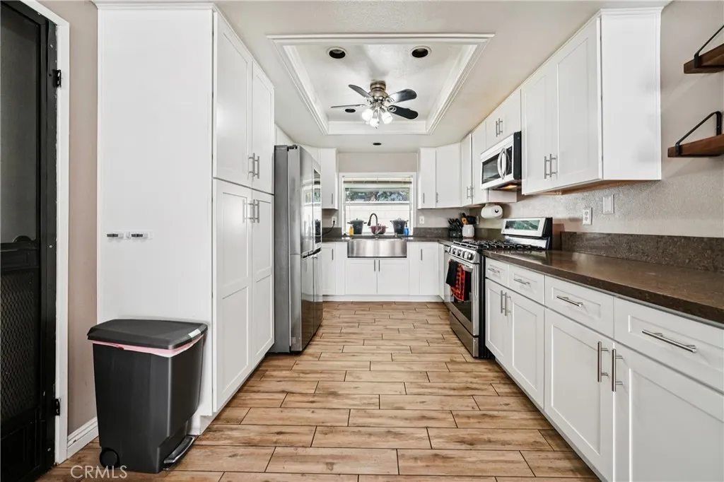 Welcome to 1925 S Starfire a beautifully updated 3-bedroom, 2-bath home located in the heart of Corona! Step inside and feel right at home in the inviting living room featuring wood-look tile flooring, plantation shutters, a ceiling fan, and a cozy fireplace that creates the perfect atmosphere for relaxing evenings. The remodeled kitchen is a true highlight showcasing quartz countertops, modern cabinetry, stainless steel appliances, recessed lighting, and a ceiling fan. The open layout connects seamlessly to the family room, making it ideal for entertaining or enjoying gatherings with family and friends. Large sliding glass doors fill the space with natural light and provide easy access to the backyard. Down the hallway, youll find the spacious primary suite with cathedral ceilings, a ceiling fan, and private sliding doors that open to the covered patio. The primary bathroom offers granite countertops, a vanity area, and a walk-in shower. Two additional bedrooms (one also with cathedral ceilings) and a hall bath with a granite-topped vanity and shower/tub complete the interior living spaces. A large enclosed patio offers flexible use perfect for a game room, home gym, or additional lounge area. Outside, enjoy a peaceful backyard featuring two storage sheds, wide side yards, and a covered patio with a balcony a wonderful spot to sip your morning coffee or unwind with a good book. Additional highlights include a two-car garage plus driveway parking for three, and a solar panel system for energy efficiency. Enjoy the convenience of having excellent schools nearby, includin