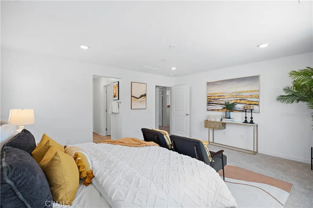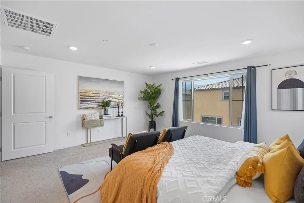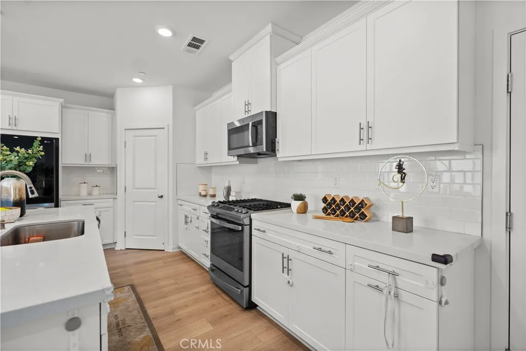 ONE OF THE LARGEST LOTS IN THE COMMUNITY,Welcome to this stunning 4-bedroom, 3-bathroom masterpiecea coveted Plan 1 model nestled on one of the largest premium lots in the exclusive, guard-gated community of Bedford. Boasting an expansive backyard, this nearly brand-new residence offers the perfect blend of style, comfort, and cutting-edge technology. Step inside to discover a thoughtfully designed open-concept layout that seamlessly integrates indoor elegance with outdoor charmperfect for entertaining and private everyday living. The chef-inspired gourmet kitchen is a showstopper, featuring modern shaker-style cabinetry, satin nickel hardware, elegant quartz countertops with designer tile backsplash, a deep stainless steel under-mount sink, and a sleek satin-finish pull-down faucet. Premium GE stainless steel appliances include a 30 slide-in front-control convection gas range, built-in microwave, and top-control dishwasher. The great room and bonus loft/flex space are pre-wired for ceiling fans, ideal for customization. Luxurious designer-selected carpet graces all bedrooms, while the entry, kitchen, laundry room, and bathrooms are finished in durable, stylish wood flooring. Each bathroom is tastefully appointed with quartz countertops, under-mount square sinks, polished-edge mirrors, satin-finish fixtures, and energy-efficient LED disc lighting. The primary bath includes a sleek fiberglass tub/shower combination with a refined satin finish. Enjoy true turn-key living with a fully landscaped backyard featuring low-maintenance turf, a dedicated gardening area, and ample gre