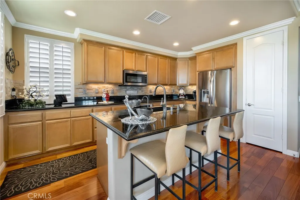 TRILOGY GLEN IVY an upscale, resort style, 55+ community, surrounded by the challenging 18-hole GOLF CLUB AT GLEN IVY and the Glen Ivy Hot Springs. 1,597 SF San Juan Model with an unforgettable view of the Temescal Valley, Cleveland Forest, Inland Empire, Views of Mt. Baldy and Lake Arrowhead / Big Bear Mountains. 2 bedrooms, Office / Den, 2 bath, 2 car garage, upgraded custom wide planked wood floor, granite counters, upper and lower kitchen cabinets, pantry, custom entertainment center, wood plantation shutters, sliding patio door to rear view patio and covered outdoor kitchen, private laundry room with stacked washer and dryer, and stainless-steel side by side refrigerator. Come enjoy all our HOA amenities, health club with 2 pools (1-indoor lap pool / 1-outdoor social pool) and 1 hot tub. In door health club with locker rooms, various pieces of exercise equipment, indoor walking and running track, 2-tennis courts, 6-pickleball courts and classrooms. Main lodge has large ball room, social lobby with grand piano, poolroom, 2 card rooms, craft room with 3 kilns, art classes. outdoor amphitheater for concerts, holiday and personal events.