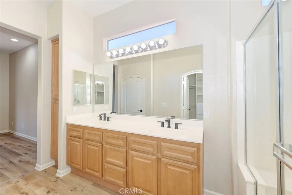 Located on the 8th Fairway with fairway views, this highly desired Shea Home Manzanita model has New Luxury Vinyl Plank flooring and Fresh Interior Paint in gated community of Trilogy. Secluded and privately located through the Coldwater Canyon gates enjoy breathtaking golf course and Cleveland National Forest Mountain views visible from the principal bedroom and living areas. Built in 2004, this home boasts 10-foot ceilings with 8 Crown Moulding, creating an impressive atmosphere perfect for casual entertaining. Custom doors and a wood paneled archway with new modern hardware have recently been installed. New plumbing fixtures and fresh paint make this home Ready to Move in! The expansive outward-facing kitchen with pull out kitchen drawers and an oversized breakfast bar & wine bottle storage w/cabinets that opens to the great room makes it ideal for gatherings. Whether hosting formal dinners in the elegant separate dining room or enjoying a cozy meal in the kitchen nook, this home is designed for both relaxation and entertainment. A custom wood built-in media niche and cabinets complete the great room with in ceiling surround speakers, 50 Sony flatscreen and cozy corner fireplace. The striking formal dining room offers extra space for larger gatherings, while the en-suite guest suite ensures privacy and comfort for your visitors. The primary suite includes a spacious walk-in closet w/ custom organizers & access to sit down golf course views and its own patio off the primary bedroomperfect for enjoying your morning coffee or evening drink. Wrap around full size electric re