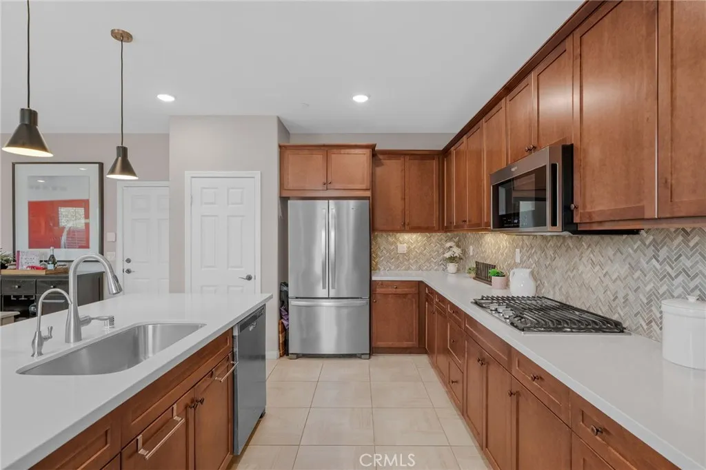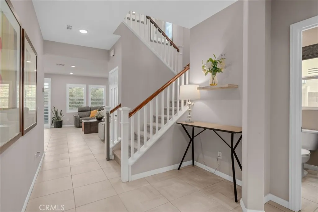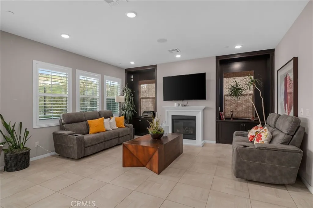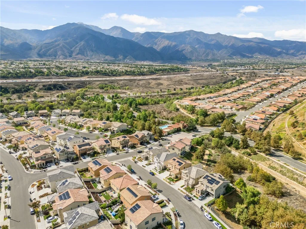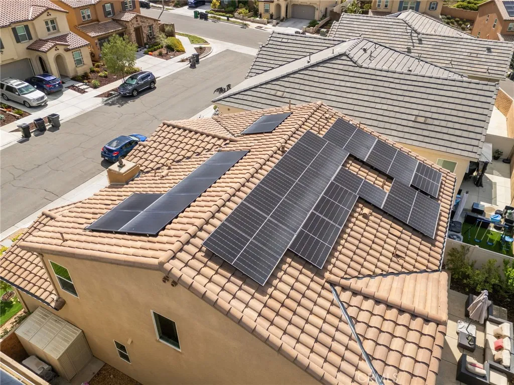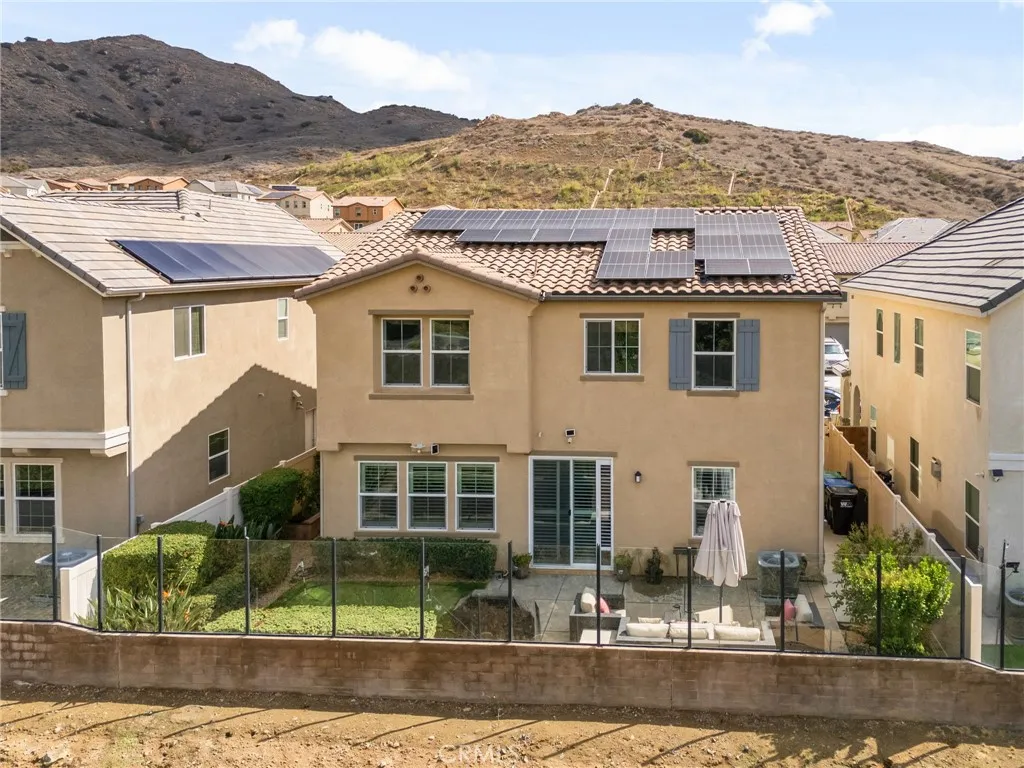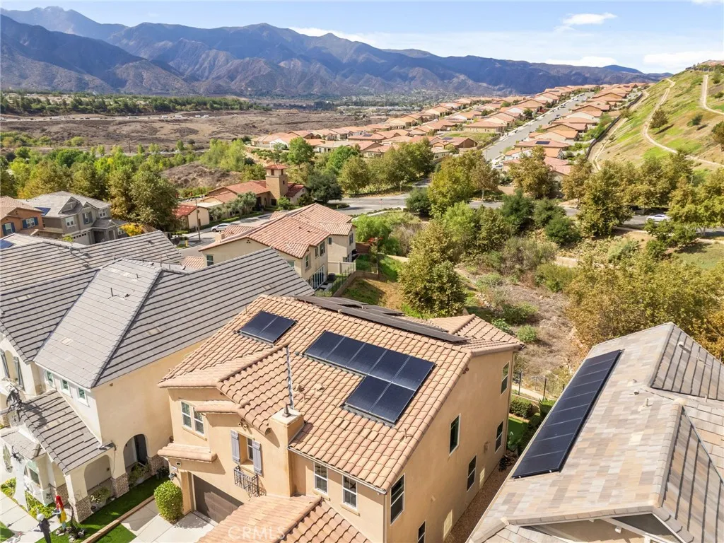 This stunning former model home is located in the exclusive gated community of Terramor and offers beautiful curb appeal with well-maintained, manicured yards and low-maintenance turf in both the front and back. Featuring 4 bedrooms and 3 bathrooms, this home boasts a highly desirable floor plan with one bedroom with a walk-in closet and a full bathroom conveniently located on the main floor. The open-concept living space showcases a gorgeous kitchen with a large island, maple-stained cabinetry, tile backsplash, built-in cooktop, and double ovenall overlooking the spacious family room and capturing the scenic views beyond. The family room is enhanced by custom built-ins, a cozy gas fireplace, and plantation shutters with roll-down shades for added comfort and privacy. Upstairs, you'll find a versatile loft, a luxurious primary suite with impressive views, two additional bedroomsalso offering stunning viewsa full bathroom, and a dedicated laundry room. Step outside to a fully landscaped backyard oasis, complete with fruit trees, mini putting green, and no neighbors behind you, providing both beauty and privacy. The epoxied garage floors add a clean, durable finish to the spacious garage. Residents of Terramor enjoy resort-style amenities, including gated entry, parks, pool, clubhouse, walking and hiking trails, and more. This energy-efficient home also includes solar panels, making it as smart as it is stylish.