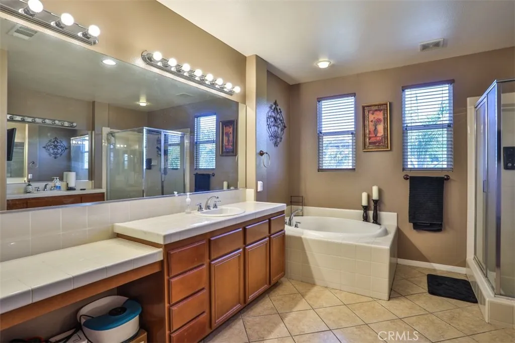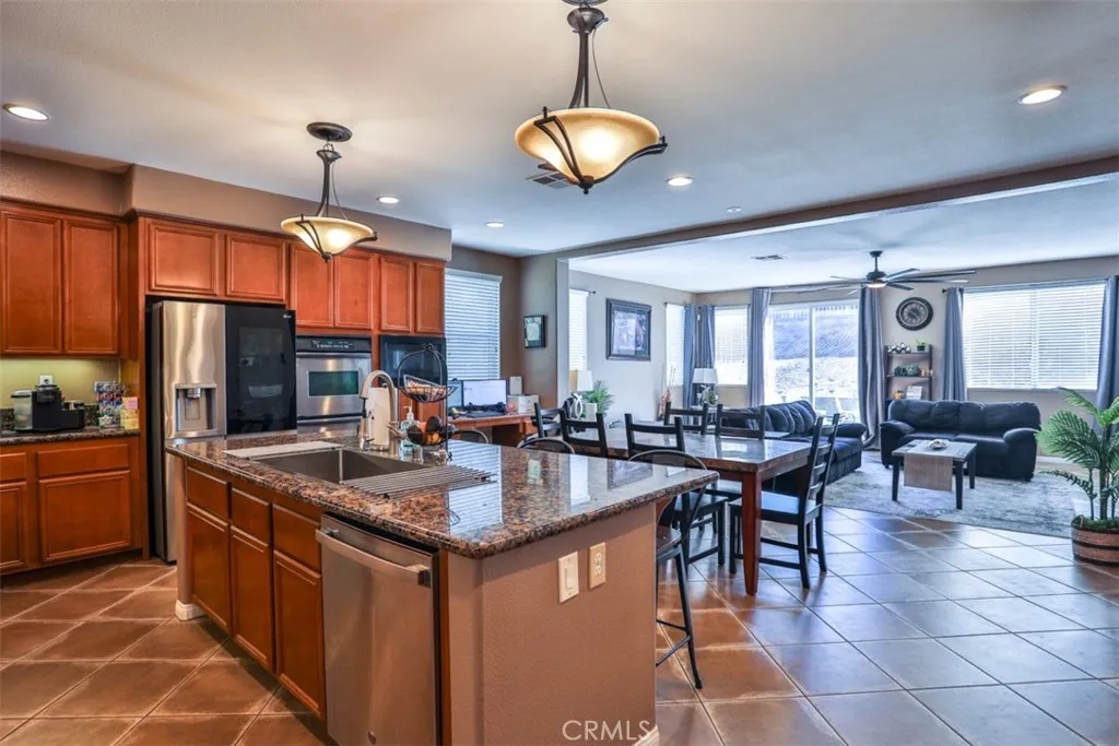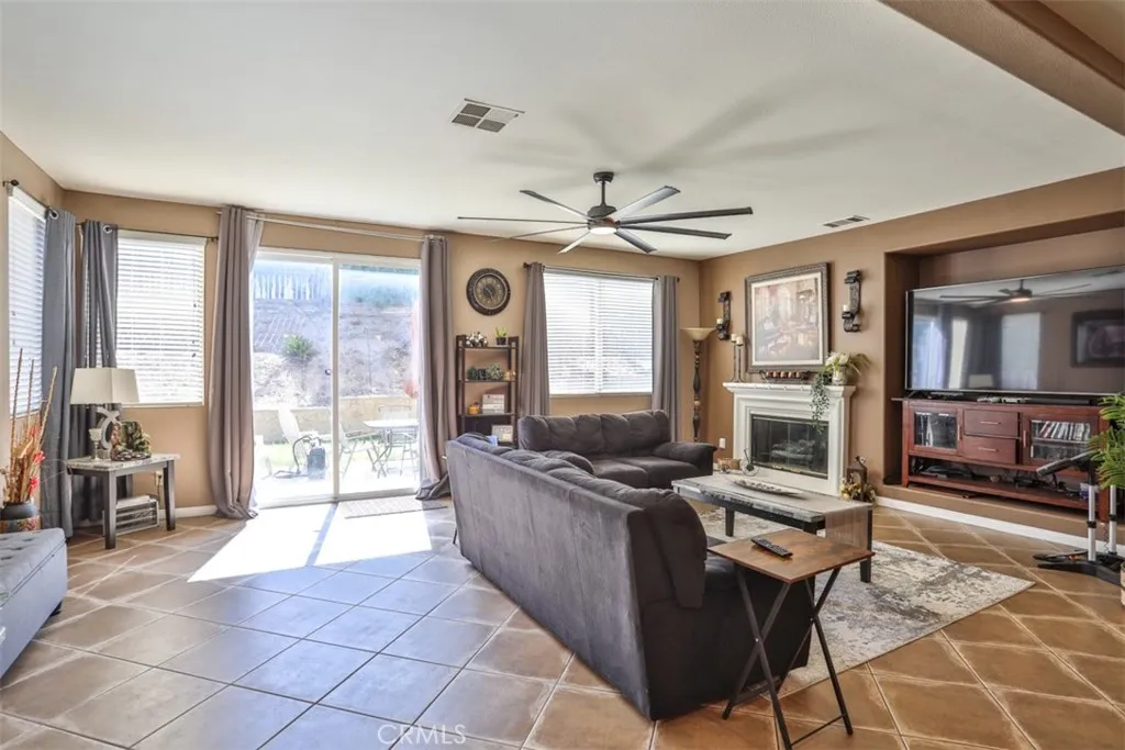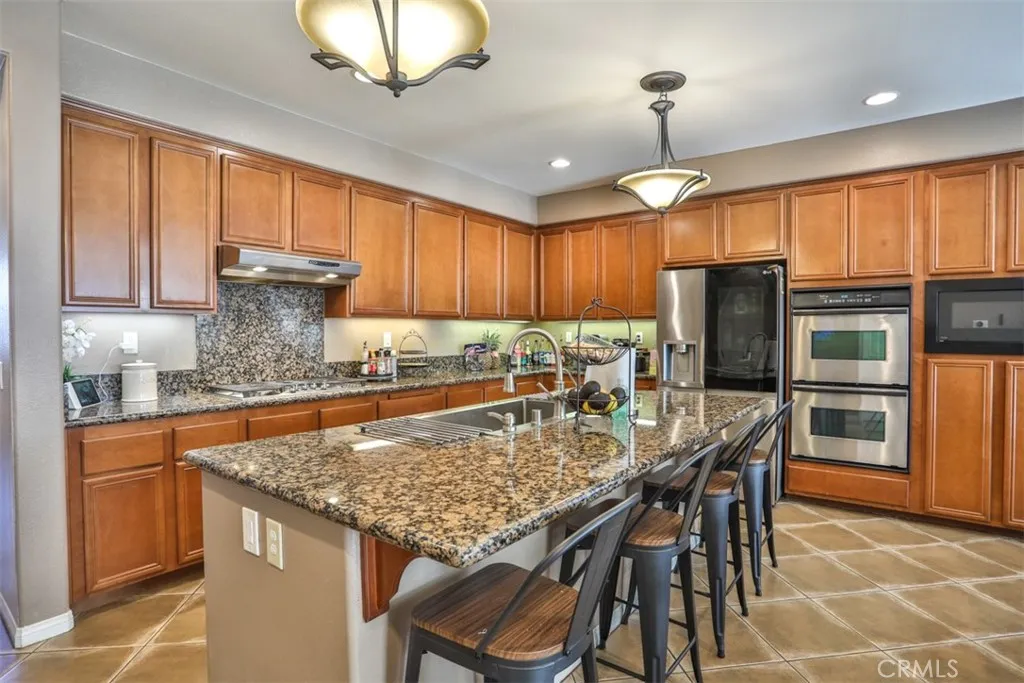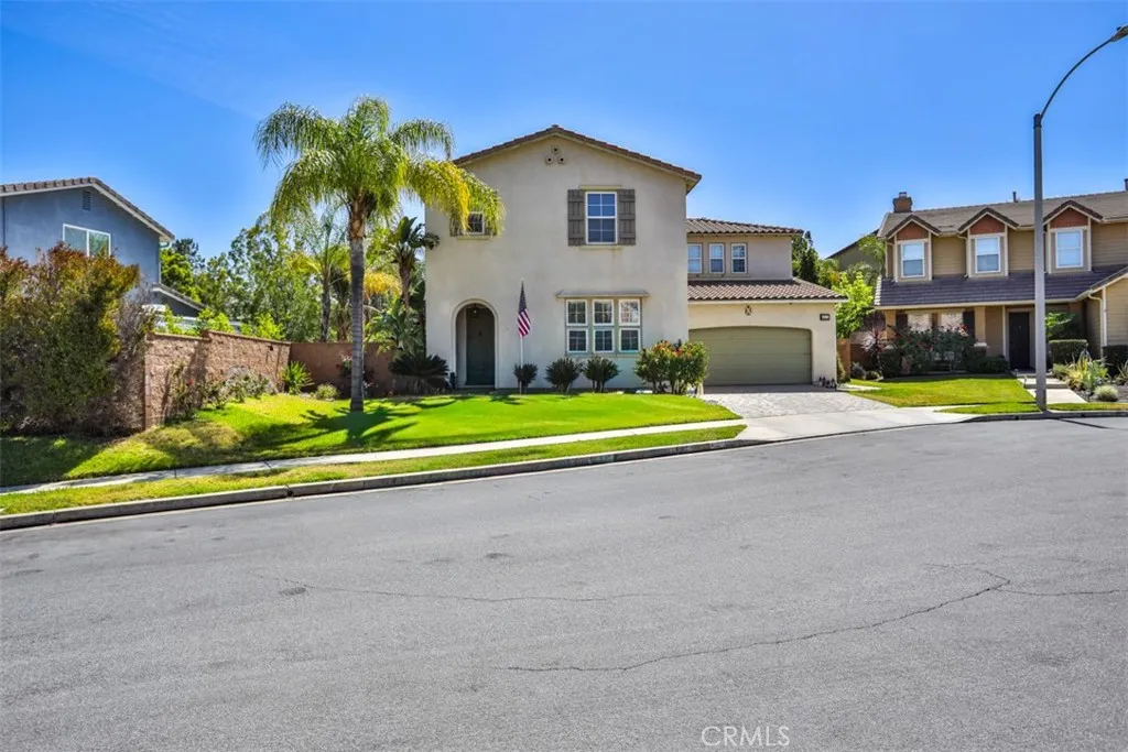 Tucked at the end of a quiet cul-de-sac in one of Corona's most established neighborhoods, this 5-bedroom, 3-bathroom home delivers the space and layout that families actually need. Built in 2004 and spanning 3,893 square feet, the home opens to a two-story entry that flows into a formal living and dining area. The kitchen is the real hub featuring double ovens, a walk-in pantry, a desk area, and an eat-in space that opens directly to the family room with a fireplace. A main-floor bedroom and bath make the layout work for guests or multi-gen living. Upstairs, you'll find three secondary bedrooms, a full bath, a loft with views, and a spacious primary suite with a walk-in closet. The backyard is flat, private, and ready patio, lawn, and room to make it your own. Three-car tandem garage and a cul-de-sac lot at 8,276 sq ft.