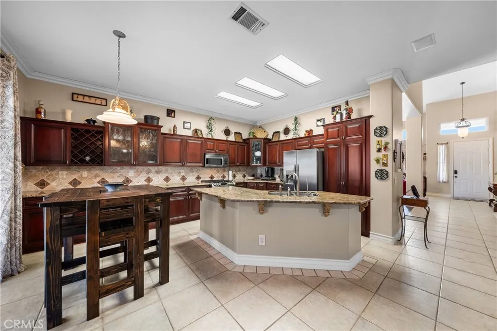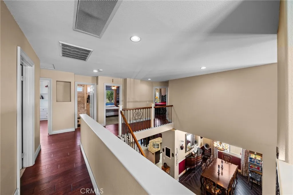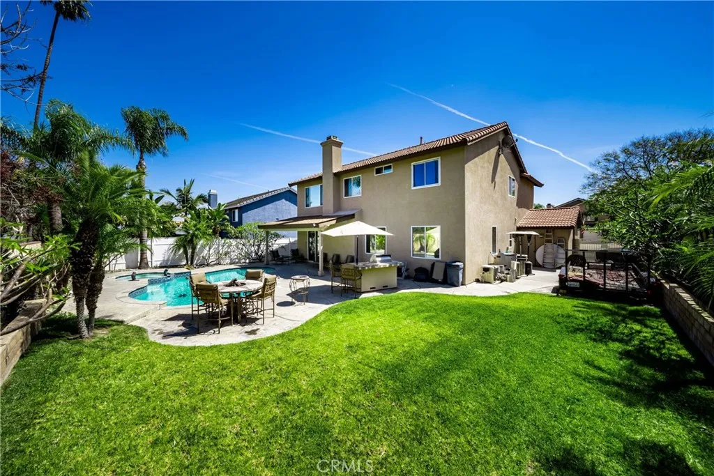 POOL * SPA * BOAT PARKING * MOVIE ROOM *THIS ONE HAS IT ALL! Welcome to this beautifully upgraded and versatile home designed for both everyday living and entertaining. From the moment you arrive, youll notice pride of ownership and thoughtful upgrades throughout. Step inside to a warm, inviting interior featuring TILE FLOORING DOWNSTAIRS and HARDWOOD AND TILE FLOORING UPSTAIR , complemented by CROWN MOLDING and a seamless, functional layout. The WROUGHT IRON staircase showcases HARDWOOD FLOORING ,creating a cohesive design. The main living space includes a BUILT-IN BAR WITH WINE FRIDGE AND MINI FRIDGE and SURROUND SOUND IN THE LIVING ROOM, perfect for entertaining. Enjoy a flexible floor plan with a DOWNSTAIRS 5TH BEDROOM (CURRENTLY USED AS AN OFFICE, EASILY CONVERTIBLE) and a FULLY REMODELED DOWNSTAIRS BATHROOM WITH WALK-IN SHOWER. The DOWNSTAIRS LAUNDRY ROOM WITH SINK AND AMPLE STORAGE adds convenience. Additional features include TANKLESS WATER HEATER, WHOLE HOUSE WATER SOFTENER FILTRATION SYSTEM, WATER FILTRATION SYSTEM IN THE KITCHEN, QUIET COOL WHOLE HOUSE FAN, and a 3-CAR GARAGE WITH EXTENSIVE STORAGE. Upstairs offers a versatile LOFT CURRENTLY USED AS A MOVIE ROOM WITH HARDWOOD FLOORING, BUILT-IN MINI FRIDGE, BAR AREA, AND RECESSED LIGHTING. Bathrooms are upgraded, including an UPSTAIRS BATHROOM WITH TRAVERTINE FINISHES. The primary suite is a private retreat featuring a FLOATING VANITY, DUAL SHOWER HEADS, TRAVERTINE FINISHES, CUSTOM CLOSET, AND SEPARATE SOAKING TUB. Step outside to a backyard designed for enjoyment with a POOL AND SPA, MINI GOLF AREA, and BOAT PAR