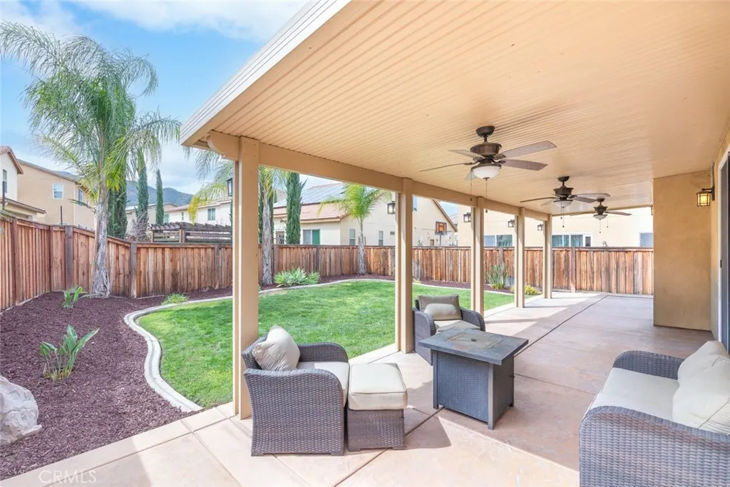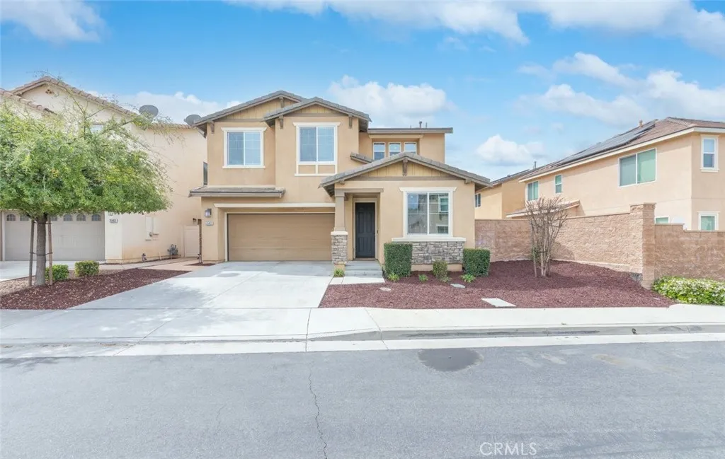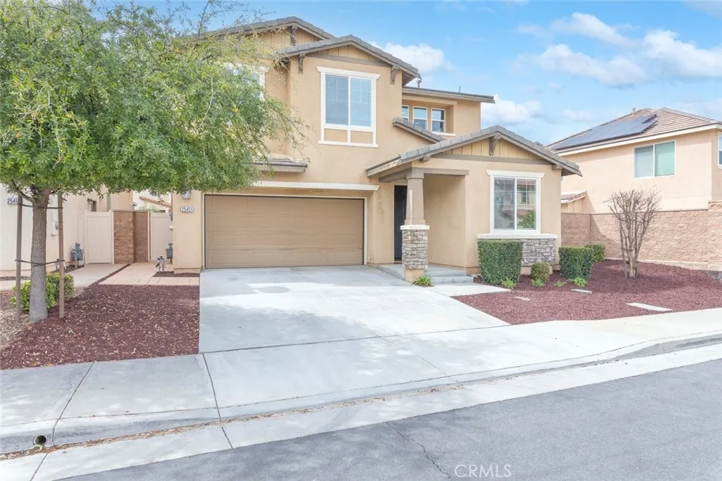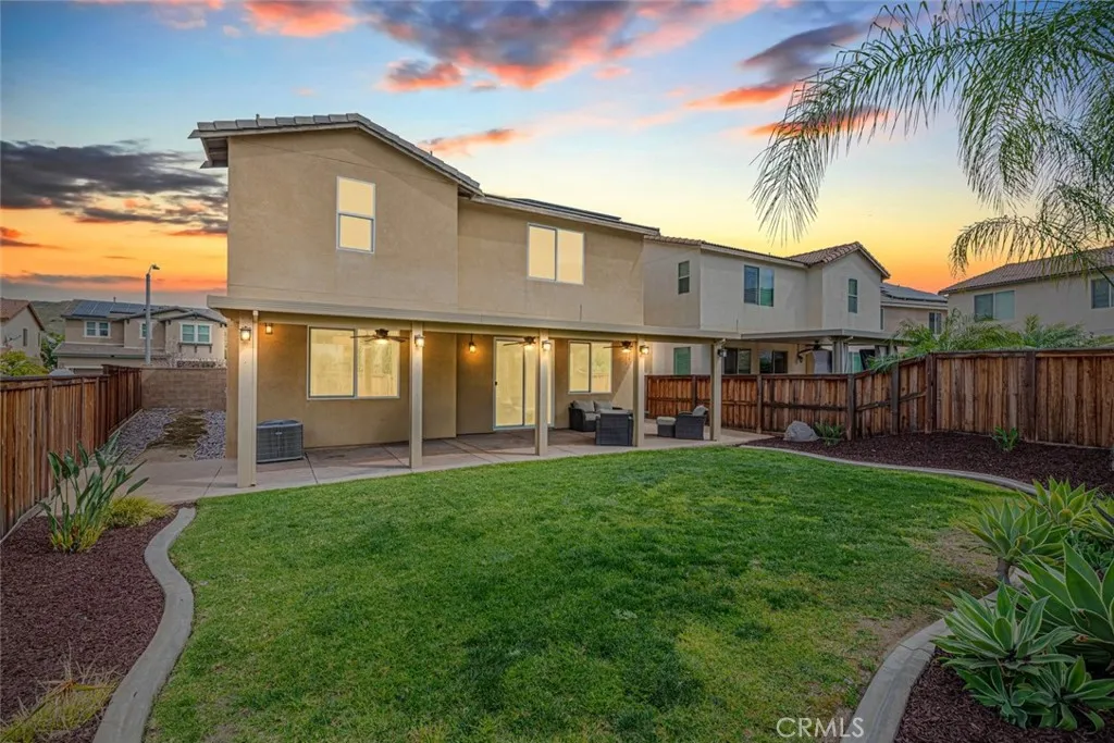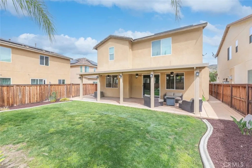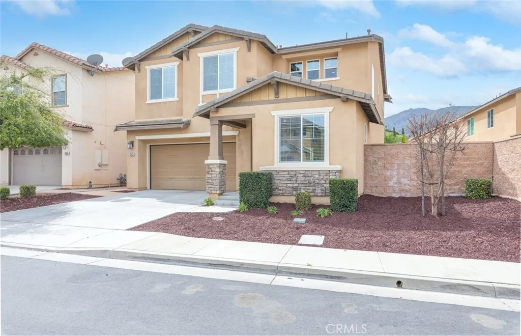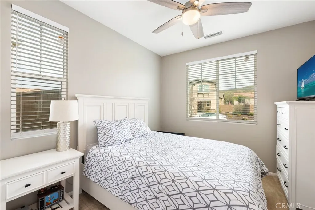 Situated in the gated neighborhood of Serrano Ridge within the beautiful master-planned community of Sycamore Creek, this beautifully maintained home is offered by the original owner and is on the market for the first time. From the moment you step inside, you will appreciate the bright and open floor plan and the pride of ownership throughout. The home features gorgeous laminate flooring and a spacious kitchen designed for both everyday living and entertaining. The kitchen offers white cabinetry, stainless steel appliances, elegant granite countertops, a center island with sink, and stylish pendant lighting. The kitchen flows seamlessly into the spacious family room and dining area, where a cozy fireplace creates a warm and inviting gathering space. The versatile floor plan includes a downstairs bedroom and bathroom, perfect for guests or multi-generational living. Upstairs you will find a generous loft, ideal for a media room, home office, or play area, along with a convenient upstairs laundry room complete with cabinetry and sink. The ample master bedroom provides a relaxing retreat and features a spacious walk-in closet. Additional interior highlights include ceiling fans, window blinds, plantation shutters, and recessed LED lighting throughout. Step outside to the spacious backyard, featuring a stamped concrete deck and a massive Alumawood patio cover complete with lighting and ceiling fans, creating the perfect setting for outdoor entertaining or relaxing evenings at home. Save big on energy costs with the leased solar panel system.Residents enjoy access to the outsta