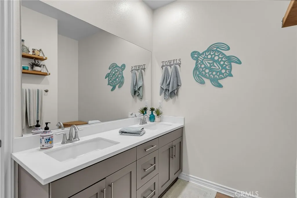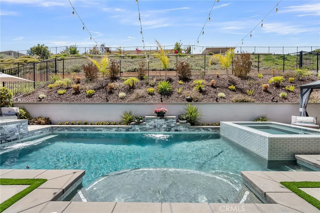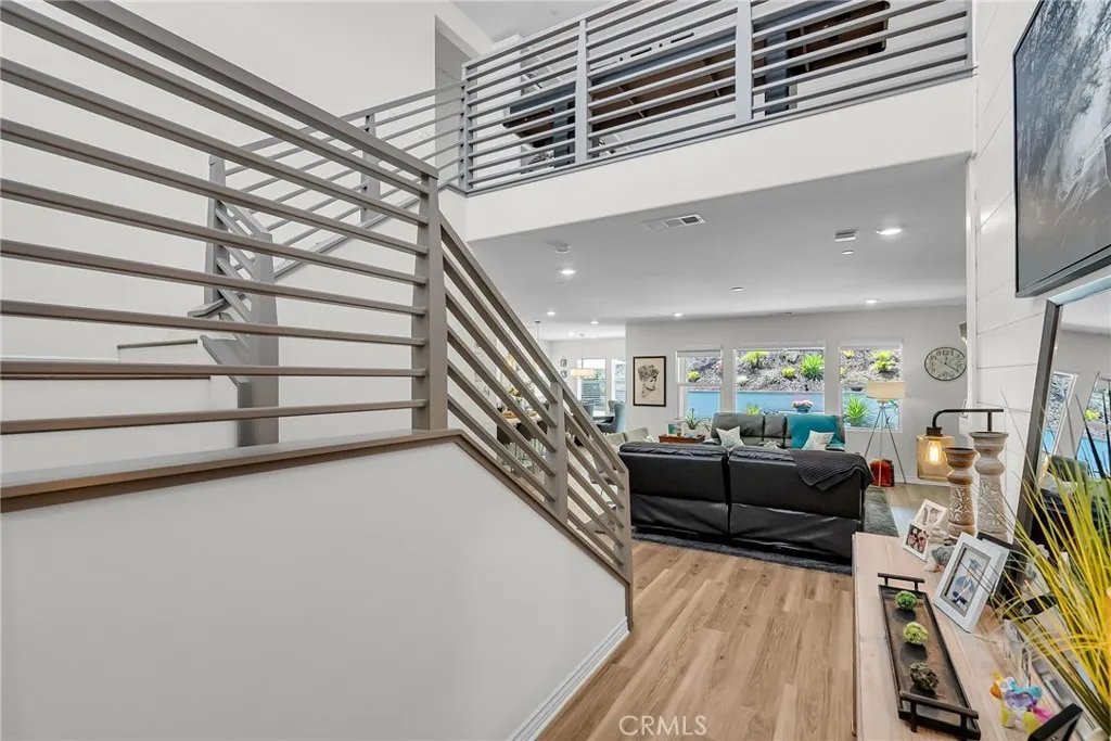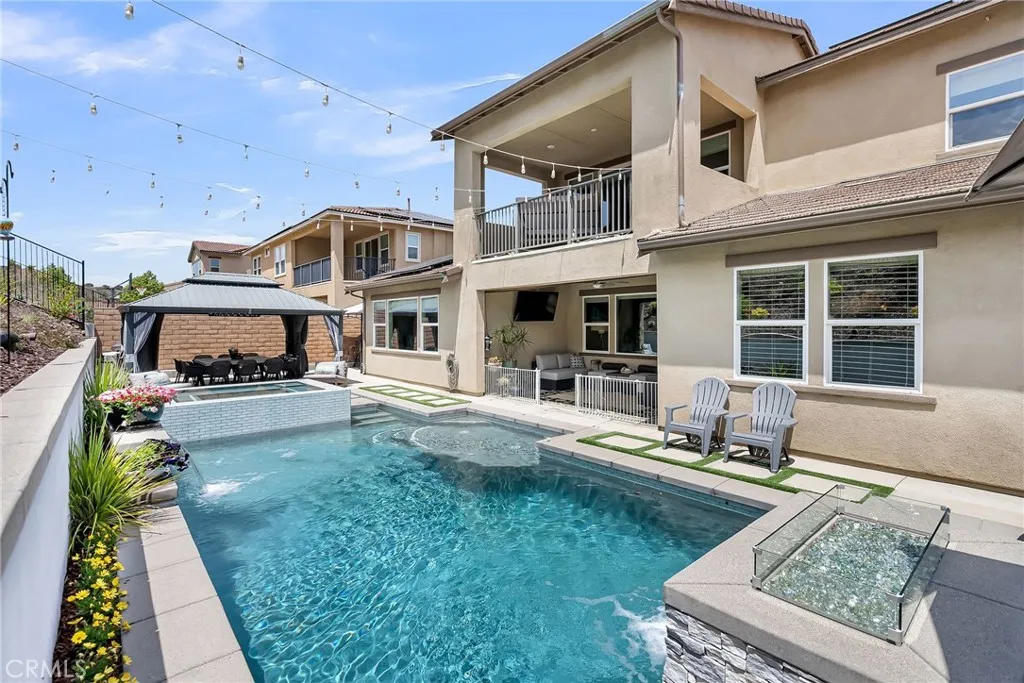 Welcome to the luxurious gated community of Sierra Bella in Corona! This pool home provides beautiful views of the Inland Empire, as well as high-end upgrades throughout. The entry sets the tone for the rest of the home. Natural light shines through and illuminates the white shiplap walls and helps light your way into the open living space. The oversized living room is central to the home and leads into both the kitchen and the downstairs primary bedroom suite. The kitchen is a chefs dream! Including a central island, the kitchen has plenty of counterspace, cabinetry, high end appliances, step in pantry, and built in refrigerator. The dining room is open to both the kitchen and living room and leads to the backyard through the slider. 3 bedrooms are located on the first floor of the home including the aforementioned main bedroom suite. This tranquil owners suite is large and has peaceful views of the backyard pool and lights. The suite includes a bathroom with dual sinks, walk in shower, soaking tub, and large walk-in closet. The other two guest bedrooms on the other side of the first floor are spacious and have a full bathroom nearby. Lastly downstairs, you have a full laundry room. The stairs in this home include upgraded bannisters that help to make the space feel more open as well. Upstairs there is a massive loft, guest bedroom and full bathroom, as well as a covered back patio that overlooks the backyard. The backyard space has been thoughtfully designed with your entertainment in mind! The large pool and spa are the main attraction with peaceful spillways and fire fe