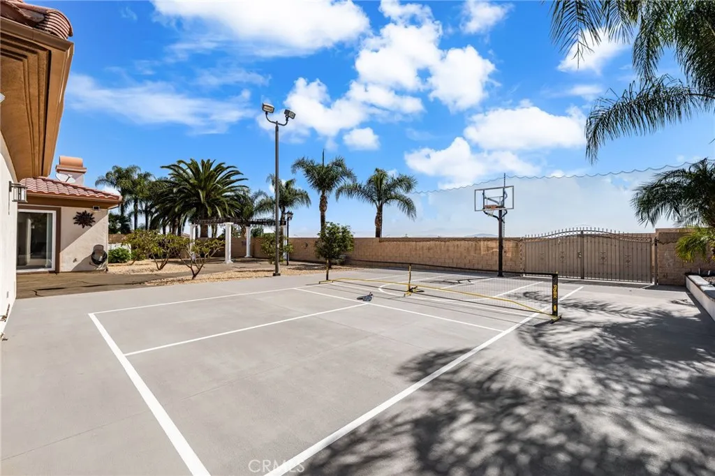 Welcome to the Beautifully Designed, Custom-Built 4,533 Square Foot Single-Story Home Located in a Small Cul-De-Sac in Desirable South Corona. Situated on an Expansive 40,000+ Square Foot Lot with NO HOA, this Property Offers Privacy, Space and Incredible Amenities. The Home's Standout Architectural Feature is the Striking Circular Formal Dining Area. There are 4 Spacious Bedrooms, Each with its Own Ensuite Bathroom, Plus a Convenient Half Bath off the Dining Area and a Spacious Office/Workout Room. The Luxurious Primary Suite Features an Oversized Walk-In Closet, and a Spa-Inspired Bathroom with Dual Sinks, a Vanity Area, a Soaking Tub and a Large Walk-In Shower. The Open-Concept Kitchen Flows into the Inviting Family room, Complete with a Gas Fireplace, High Hearth Mantle and Two Ceiling Fans. The Chef's Kitchen is Equipped with a Grand Walk-In Pantry, Stainless Steel KitchenAid Appliances -including a Built-In Refrigerator, Oven with 6 Burner Cooktop, a Single Oven, Microwave, Trash Compactor and Dishwasher. The Large Center Island has a Vast Amount of Storage and a Eating Area and Access to the Backyard. The Spacious Indoor Laundry Room Offer Ample Cabinets, a Utility Sink, Generous Counter Space and Direct Access to the Garage. Just off the Dining Area is the Game Room Featuring Custom Resin Countertops, Cabinets for Storage, Color-Changing Lighting, Bar Sink, Small Refrigerator, Built-In Media Cabinet, and a Sliding Door to the Outside Barbecue Area. Designed for Entertaining, the Backyard Includes Two Large Covered Patios, a Gas Fire Pit, Barbecue Island with Bar Sea