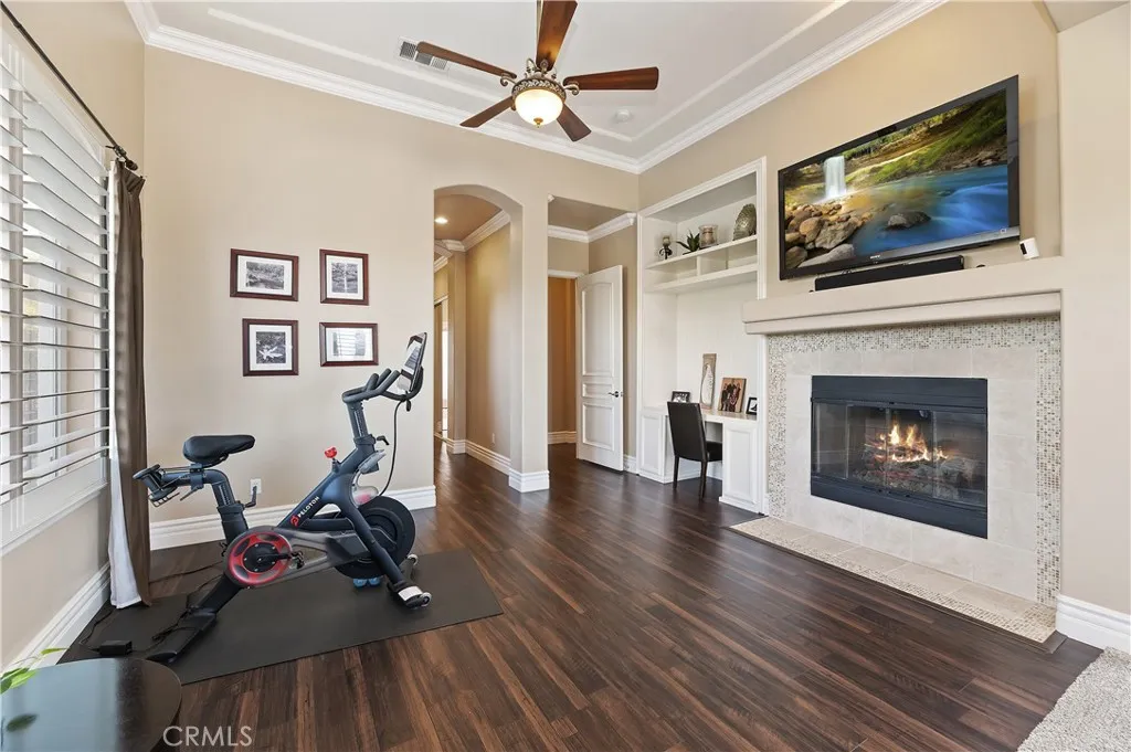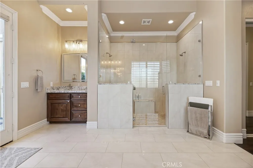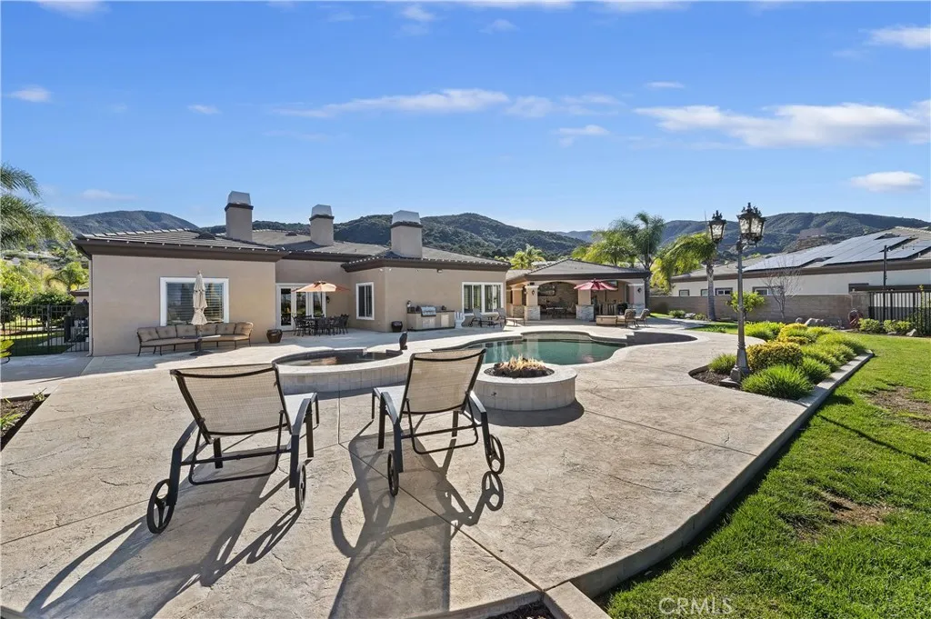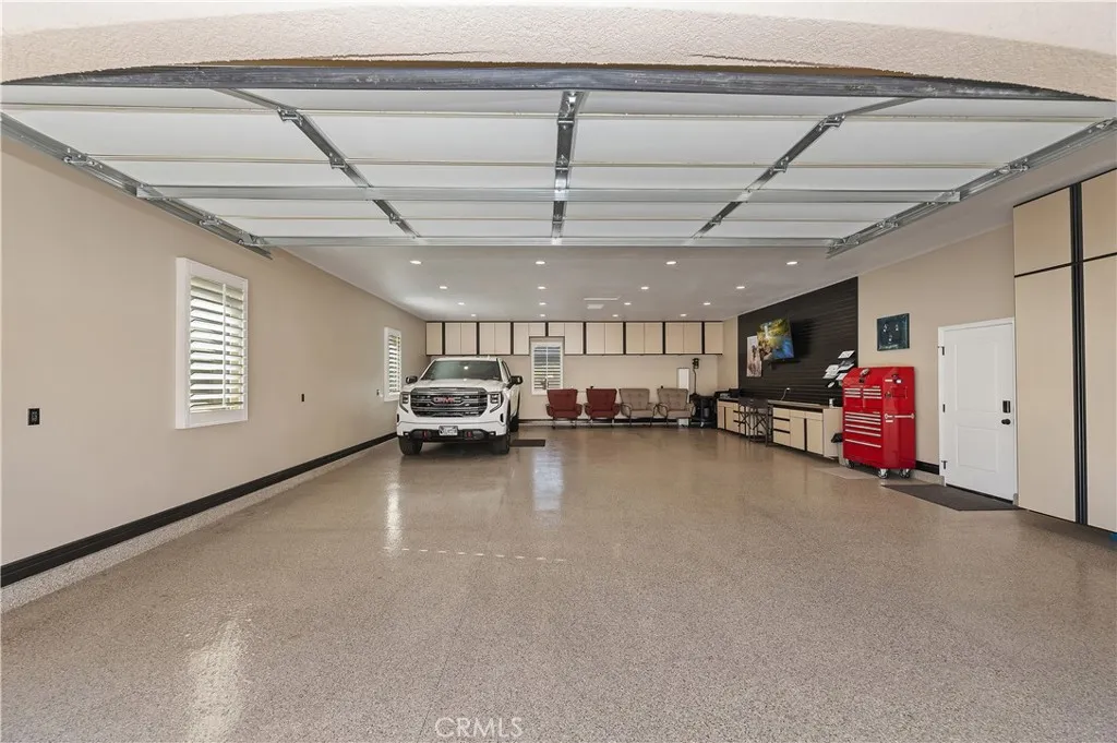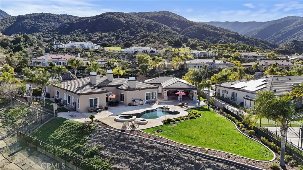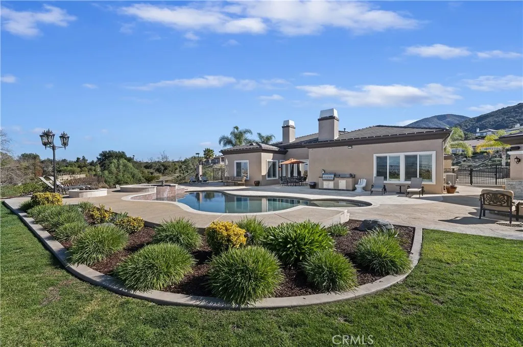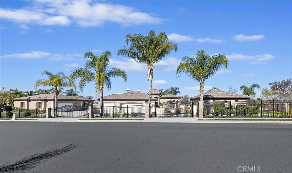 This stunning single-level Amberhill estate in the highly sought-after Pinnacle community offers the perfect combination of luxury, space, and functionality. Spanning 4,058 sq. ft., this meticulously maintained home features four spacious bedrooms and four bathrooms, designed with comfort and entertaining in mind. Car enthusiasts will be impressed by the 12-car garage setup, which includes a 4-car attached garage, a 6-car detached garage, and an additional 2-car detached garageeach featuring epoxy-coated floors and built-in cabinetry, ideal for extra storage or workshop space. Inside, new luxury vinyl plank flooring and plantation shutters complement the homes elegant and modern design. The family room, complete with a custom-built entertainment center, flows seamlessly into the open-concept chefs kitchen featuring granite countertops, a 48 built-in refrigerator, dual ovens, a walk-in pantry, and a full bar area perfect for entertaining guests. Step outside into your private backyard oasis with breathtaking views and a 1,250 sq. ft. outdoor living area. Designed for year-round enjoyment, this space includes surround sound, a built-in BBQ, two fire pits, an outdoor refrigerator, and an ice machine. The resort-style pool and spa, easily controlled by the AquaLink system, provide the ultimate retreat. The beautifully landscaped grounds feature custom pavers, stamped concrete, extensive lighting, and 24 mature fruit-bearing trees. A wrought-iron dog run is also conveniently located on the side yard. For added security and peace of mind, the property is fully gated and equipped