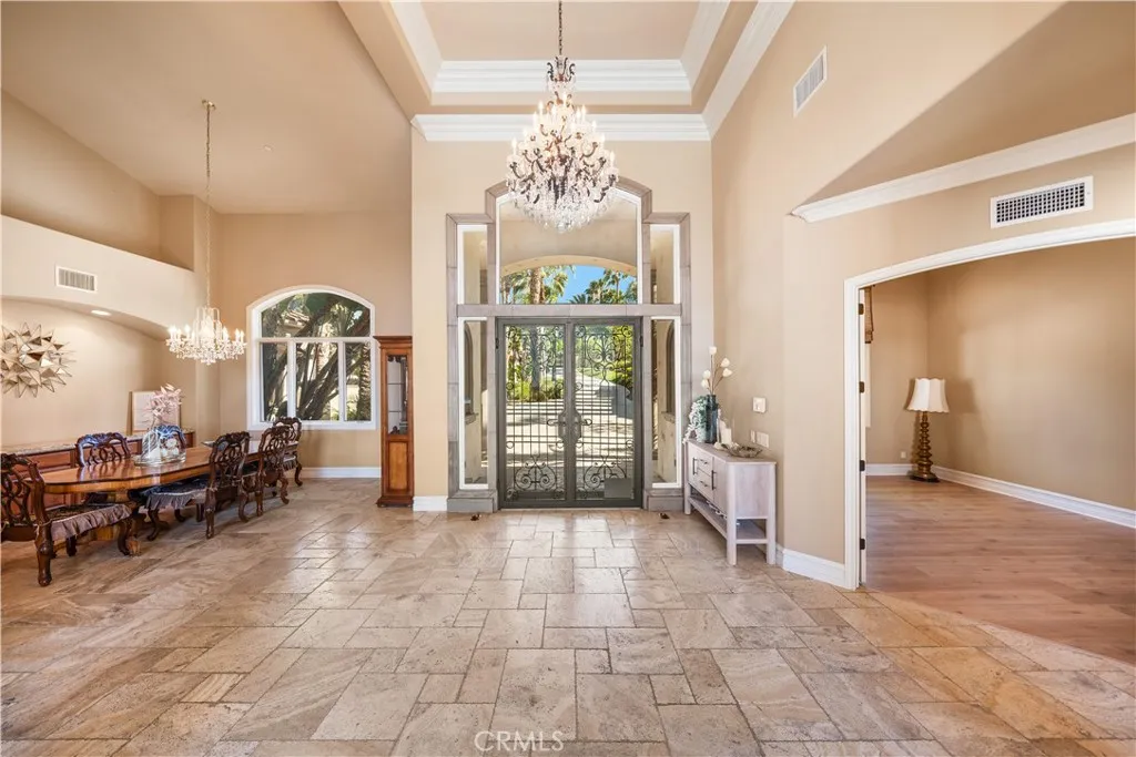 Welcome to PARADISE~!~ This hidden gem is a masterfully crafted private estatecustom-designed, discreetly luxurious, and truly unique. You will not find this level of quality and attention to detail in any of the semi-custom homes in Corona. Upon entry, custom floor-to-ceiling glass walls immediately capture sweeping views of the city and surrounding mountainsan awe-inspiring panorama that sets the tone for the entire home. This estate features five large bedrooms each with its own bathroom, with custom guest suite can be your 6th bedrooms. A private office on second floor with sweeping views of the beautiful cityscape offers the perfect space for work or quiet reflection. The heart of the home lies a chefs kitchena true culinary haven featuring top-of-the-line stainless steel appliances, sleek granite countertops, a spacious walk-in pantry, and an expansive center island. Both highly functional and visually striking, this kitchen seamlessly flows into the open-concept family room, perfect for both everyday living and effortless entertaining, built in eaves provide shade for decking around stunning oversized infinity pool with breathtaking city lights and mountain views, completely private, fully gated with state of the art electronic system, impeccable landscaping, 4 car garages, no association and lower tax rate.