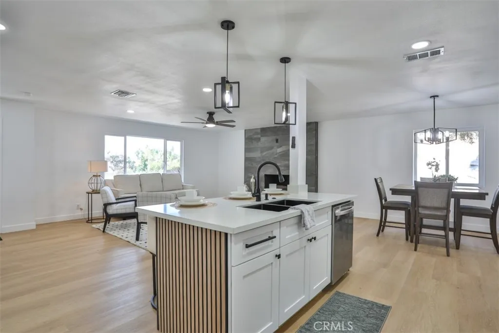 *Backup Offers being accepted***PRICE REDUCED*Get It While It's Hot***See Our 360 Degree Virtual Tour* Modern Ranch-Style Beauty in North Corona-Welcome to this stunning, fully renovated near 2,500 sq ft single-story modern ranch-style home nestled on a spacious 0.27-acre lot in desirable North Corona. Featuring 3 bedrooms, 2 bathrooms, and a bonus den, this home blends contemporary upgrades with timeless charm. Step inside to a bright open floor plan showcasing a brand-new gourmet kitchen complete with a center island, gleaming quartz countertops, ranch-style sink, sleek black fixtures, and ample storage. The heart of the home flows seamlessly into the family room, highlighted by a custom fireplace perfect for relaxing or entertaining. The luxurious master suite offers a peaceful retreat with a spa-inspired bath featuring an exotic porcelain walk-in shower with glass enclosure, dual sinks, and a massive walk-in closet. Manufactured hardwood floors run throughout the home, complemented by crisp white paint, new interior doors accented by custom black door handles and hinges. Throughout the home there are recessed LED lighting, and ceiling fans. Additional upgrades include a brand-new HVAC system with new condenser and ducting, dual solar systems with Tesla backup batteries (leased), and energy-efficient new windows. The exterior boasts fresh paint, custom landscaping, and a long driveway with RV parking, complete with dedicated power and water hookups. Situated close to shopping, dining, and with easy access to both the 15 and 91 freeways, this turnkey home offers comfort,