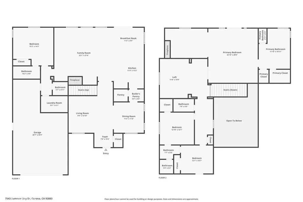 Located in the prestigious, guard-gated community of The Retreat, this executive home offers breathtaking mountain views with no neighbors across the streetjust open space and natural beauty. With exceptional privacy and curb appeal, this residence stands out in one of South Coronas most sought-after neighborhoods. Step inside to find plantation shutters and ceiling fans throughout, along with formal living and dining rooms ideal for entertaining. A wide staircase with custom wrought iron banister leads upstairs, while the main level features upgraded flooring and flows into an upgraded kitchen with expansive counter space, a large food pantry, Butlers pantry, and included refrigerator. The adjacent family room showcases a custom stone accent wall, adding warmth and character. This home offers dual primary suites for ultimate flexibility. The upstairs primary suite is a true retreat, complete with a cozy fireplace, spacious sitting area, large walk-in closet, and private balcony with sweeping mountain views. The downstairs en-suite bedroom includes a full bath along with a built-in refrigerator and microwaveperfect for guests, multigenerational living, or an in-law setup. A large upstairs loft offers additional living space, while a linen closet, powder room, and a laundry room with sink add everyday convenience. Washer and dryer are also included. The additional guest bedrooms are generously sized to accommodate a variety of needs. The backyard is designed for relaxed outdoor living, featuring a California room, Alumawood patio cover, built-in barbecue, gas fire pit, and b
