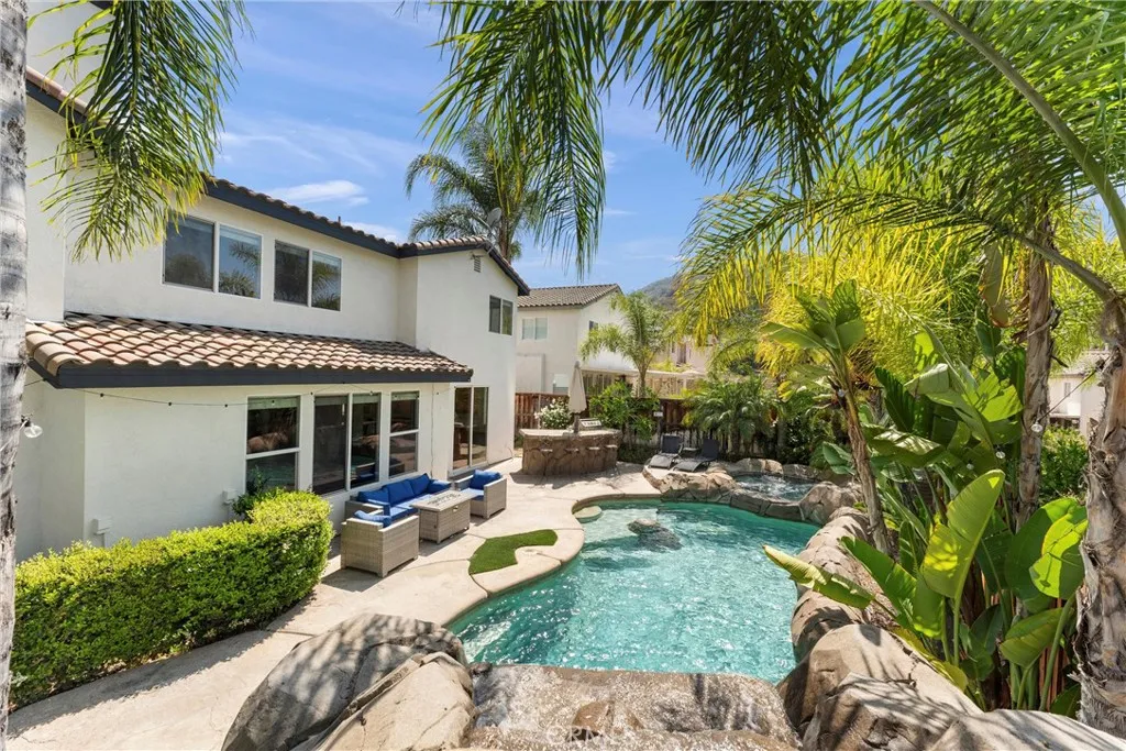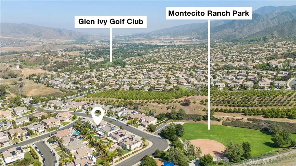 POOL, SPA & BBQ ISLAND | 5-BEDROOMS | 1ST FLOOR JUNIOR SUITE | 3-CAR GARAGE | LOW HOA | NO MELLO ROOS | Welcome to this stunning pool home nestled in the highly sought-after Montecito Ranch Community. From the moment you arrive, the curb appeal and pride of ownership are undeniable. Enter through grand double doors and be greeted by soaring ceilings, abundant natural light, and luxury wood flooring that flows throughout the main living spaces. The formal Living Room with its beautiful fireplace is an inviting space for relaxing or entertaining. Just beyond, the formal Dining Room impresses with dazzling chandelier and double-sided fireplace that adds warmth and elegance to both spaces. The heart of the home is the chefs Kitchen with extended cabinetry, breakfast bar seating, dual ovens, gas cooktop, Walk-In Pantry, and convenient Butlers Pantry connecting to the Dining Room. The open-concept layout leads to a spacious Family Room, ideal for everyday living. Upstairs find your luxurious Primary Suite, a true haven with its own oversized private sitting room. The spa-inspired Ensuite Bathroom features dual vanities, makeup station, walk-in shower, deep soaking tub with mountain views, and a massive walk-in closet. Upstairs, Bedroom #2 is a Junior Suite with private bathroom. Bedroom #3 is well-sized while Bedroom #4, located on the main floor, is an additional Junior Suite with adjoining bathroom and walk-in shower, perfect for multigenerational living. An oversized 5th Bedroom is perfect as a versatile space - perhaps your new Media Room or Home Office! You'll also find a ch